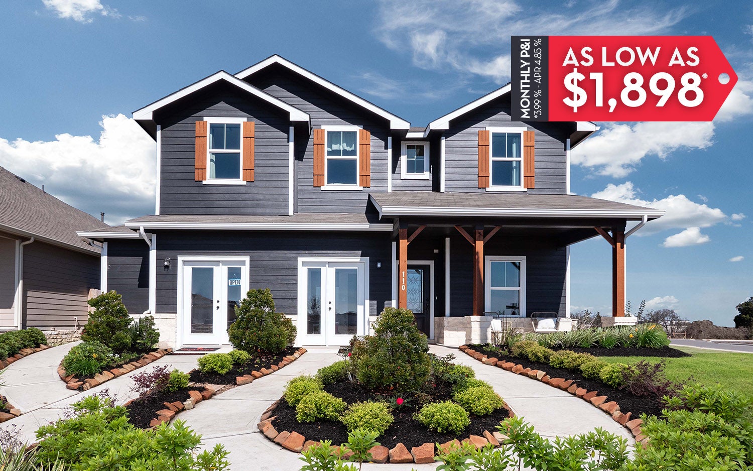 The model homes are located in Downtown Kyle on the west side of IH-35. Exit 210 going south from Austin, then exit 213 coming North from San Marcos. Take the u-turn and head South on the frontage road. Take a right on Opal Lane and go past the the railroad tracks, where our models are on the left at 110 Olympic Park Drive (Concho Floor Plan) and 100 Zion Drive (Onyx Floor Plan).