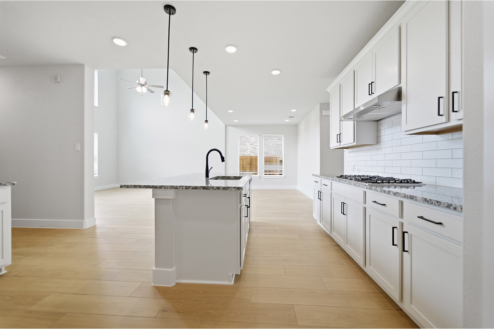 The exciting, two-story Hayden home offers plenty of flex space with bright and airy rooms. Upon entering this home, you are greeted with the stairway to your second floor, as well as your convenient downstairs powder bathroom and entry to your private study room. You can opt to turn the study room into a bedroom if you need extra space for guests. Traveling down the foyer, you will be captivated by the open-concept layout that flows from the two-story family room to the inviting dining space and spacious kitchen. This area boasts a ton of options such as an appealing fireplace for your family room, and an extra sink in your kitchen to serve as a wetbar! This layout is perfect for entertaining gatherings of any size. Your kitchen also comes with attractive features like sleek granite countertops, ceramic tile backsplash, industry-leading appliances, and a kitchen island! Right off the kitchen is entry to your walk-in utility and your two-car garage. You can even add on extra space, turning your garage into a two-and a half car or three-car garage! For those that love spending quality time with family outdoors, the Hayden plan gives you the ability to include a sizable covered patio in your backyard. Back inside, you are met with your deluxe master retreat featuring a huge walk-in closet and a divine master bathroom. Your master bathroom features dual vanities, a bathtub and a stand alone shower that you can transform into a super shower if you desire. Head upstairs where fun for the whole family resides. Your second floor was built for game night and family fun sporting a media and game room that you can supersize. Additionally, upstairs holds your second, third and fourth bedrooms all containing large walk-in closets, as well as your secondary bathroom. Need another bedroom to accommodate your family? Switch out the media room for another bedroom. The Hayden is the ideal space for families of any size. You will love the space and comfort this home provides.