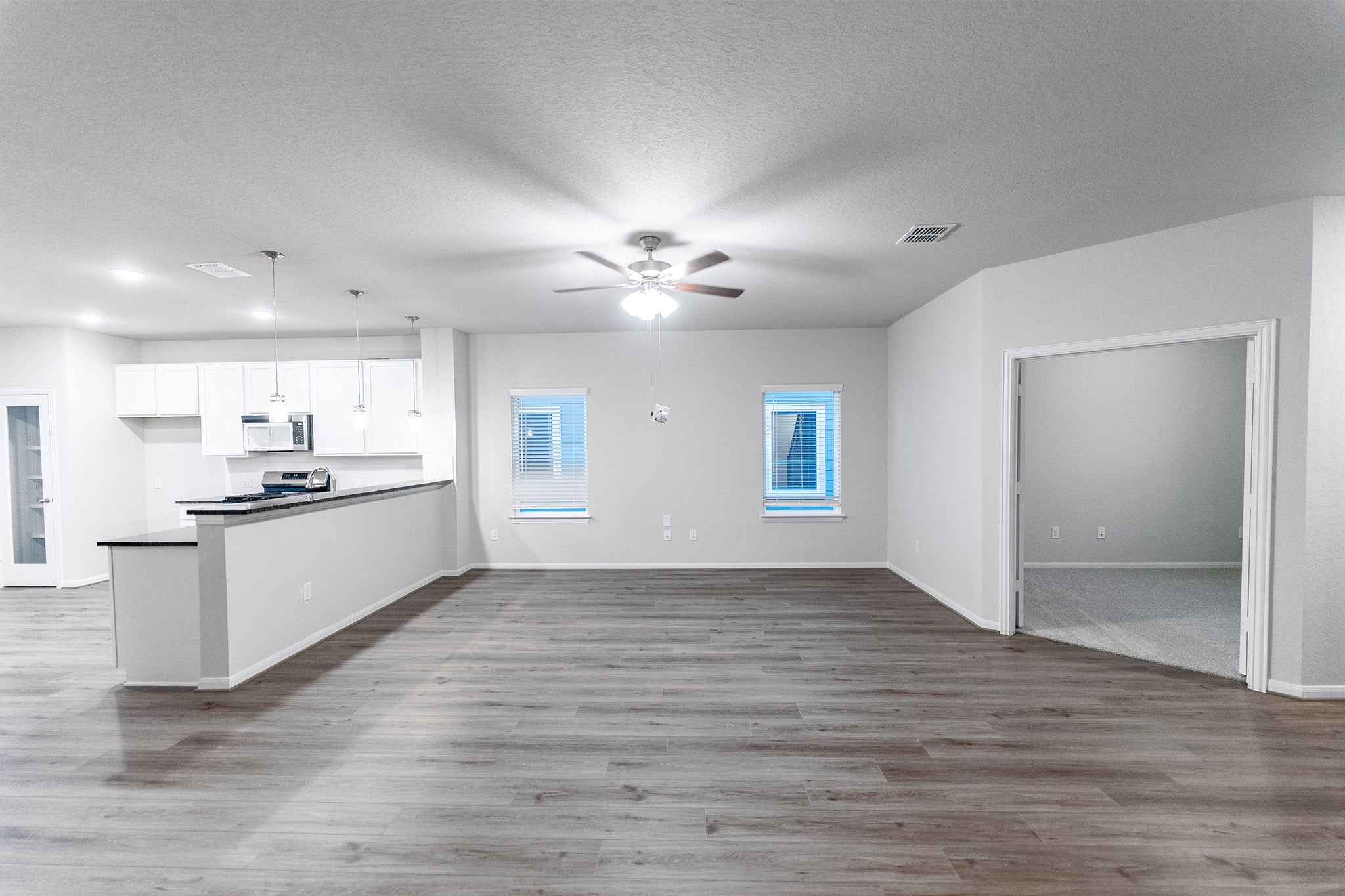 The Comal home boasts three bedrooms, two full bathrooms, and an open-concept design!