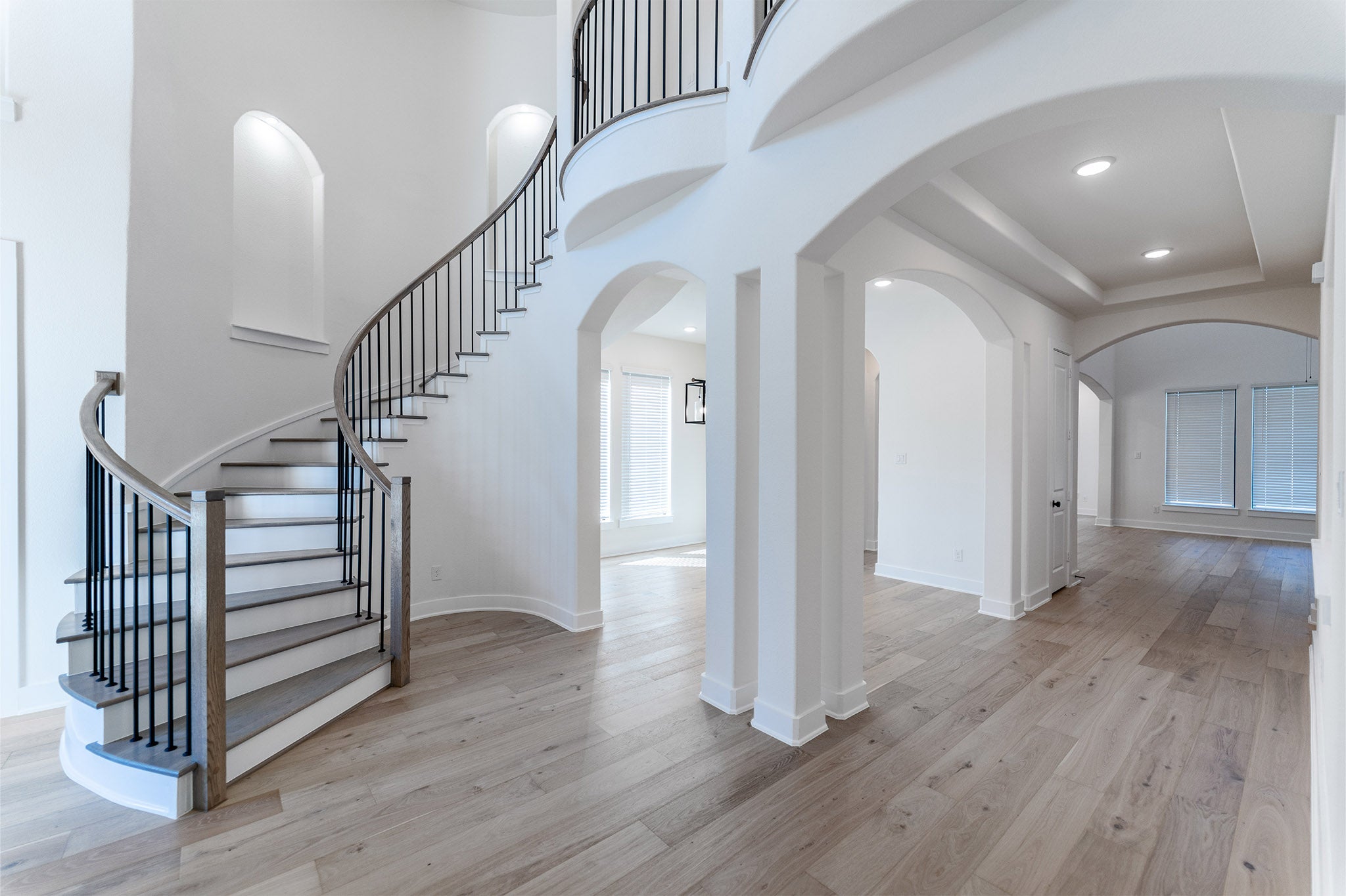 The pinnacle of luxury living is found in this five-bedroom, three-and-a-half bathroom, 4,052-square foot Laguna II floor plan. The dramatic entry showcases a sweeping staircase with two Juliet overlooks, a convenient downstairs powder room, your walk-in utility room, and entry to a secluding living space that you can turn into a study room. You also have the option of expanding your two-car garage into a 2.5 or three-car garage, front or side load. A gallery sets the tone for an inviting dining room and a two-story family room that opens to an island kitchen and adjoined breakfast area, providing optimal convenience. The formal dining room is the perfect spot to host guests since you have the option of including cabinets and a wine refrigerator. Your kitchen boasts plenty of attractive features such as granite countertops, industry-leading appliances, and a walk-in pantry with an added butler's pantry! With this luxurious floor plan, you can even opt to extend your kitchen into a platinum kitchen with dual islands. For the outdoor enthusiasts, the included covered patio is the perfect escape. The master suite boasts a reading alcove, while the master bathroom holds dual walk-in closets and sinks. Elevate your master suite by adding a bay window allowing for abundant natural light, separating the vanities in the master bathroom or opting for a secondary master bedroom/bathroom on the first floor. Travel upstairs where you have plenty to look forward to! The second floor boasts four large bedrooms, three walk-in closets, two bathrooms, a raised gameroom and a cozy media room give you plenty to look forward to upstairs. You are also granted two full bathrooms, as well as the option for a covered balcony off the gameroom. The variety of possibilities and options that the Laguna II floor plan offers allow you to personalize this home to your family’s desires. With this layout, you will remain comfortable no matter how many family members or guests reside in your home.