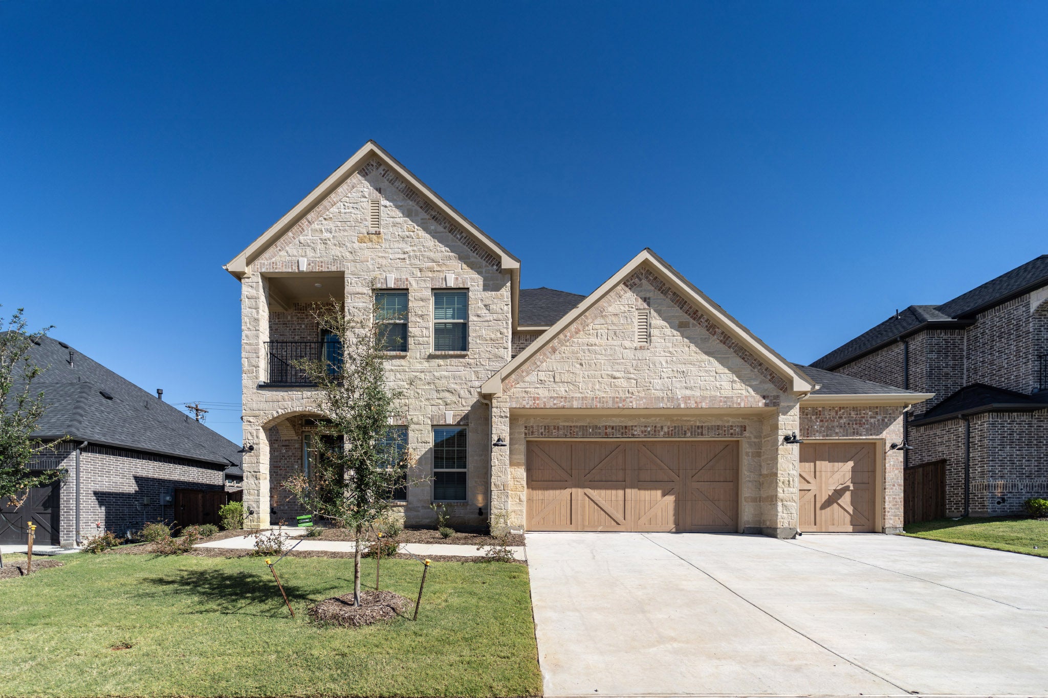 The Sausalito floor plan is a sophisticated design packed with custom elements. The rounded breakfast area, spiral staircase, and two story dining room make an impressive statement in this stunning four bedroom design. Entering this home, you are met with a secluded study room that you can turn into a guest suite with an attached bathroom and walk-in closet. Next you are greeted by the integrated kitchen and breakfast area that opens up to the formal dining and large family room, making entertaining guests a breeze. Your kitchen features many attractive elements like granite countertops, a kitchen island, and a spacious pantry. For those who like to spend ample time outdoors, the large covered patio is the perfect sanctuary for you to relax under. Adjacent to your beautiful sweeping staircase is your convenient downstairs powder bathroom, as well as your walk-in utility room and access to your two-car garage. Choose to expand your garage by including space for a third vehicle or a half-space for additional storage. You can also choose to have a two or three-car side load garage instead. Retreat to your master suite that gives you the option of including a bay window allowing for abundant natural light to seep through. The master en-suite bathroom features double walk-in closets, dual vanities, and a large soaker tub with a separate shower. Wander to the second story where you will discover a gameroom that the kids will love, a secondary bathroom, and a cozy media room that is perfect for family movie nights at home. You will also find the third bedroom and the fourth bedroom with an attached full bathroom and each containing walk-in closets. You can also swap out the secondary bathroom tub/shower into a super shower if you prefer! Needing an extra bedroom for guests? Switch out the media room for a fifth bedroom and fourth bathroom to accommodate your needs. You can also include a covered balcony for everyone to enjoy!. You will love living in your Sausalito home!