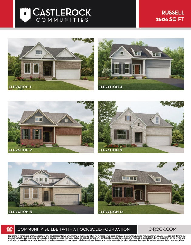 Introducing the Russell, a spacious home perfect for families seeking comfort and convenience. With five bedrooms, three bathrooms, and a two-car garage, this two-story abode offers ample space to accommodate your entire family. Step inside and be greeted by a beautiful kitchen featuring a large island, perfect for preparing meals or hosting gatherings. The open layout seamlessly flows from the kitchen into the great room and casual dining area, creating an inviting space for entertaining guests or spending quality time with loved ones. The master suite is a true retreat with the option of a trey ceiling and a luxurious bay window that adds an extra touch of elegance. There are three additional bedrooms upstairs, each boasting walk-in closets for added storage and privacy. Enjoy even more living space in the bonus room with its vaulted ceiling, ideal for creating a playroom, office space, or entertainment area. With unfinished storage space off the bonus room, you'll have plenty of options for keeping your belongings organized and out of sight. Other notable features of the Russell include a walk-in pantry for storing all your essentials, as well as the convenience of having both the master suite and an additional private guest suite on the main level. Experience comfort, style, and functionality in the Russell - your dream home awaits!