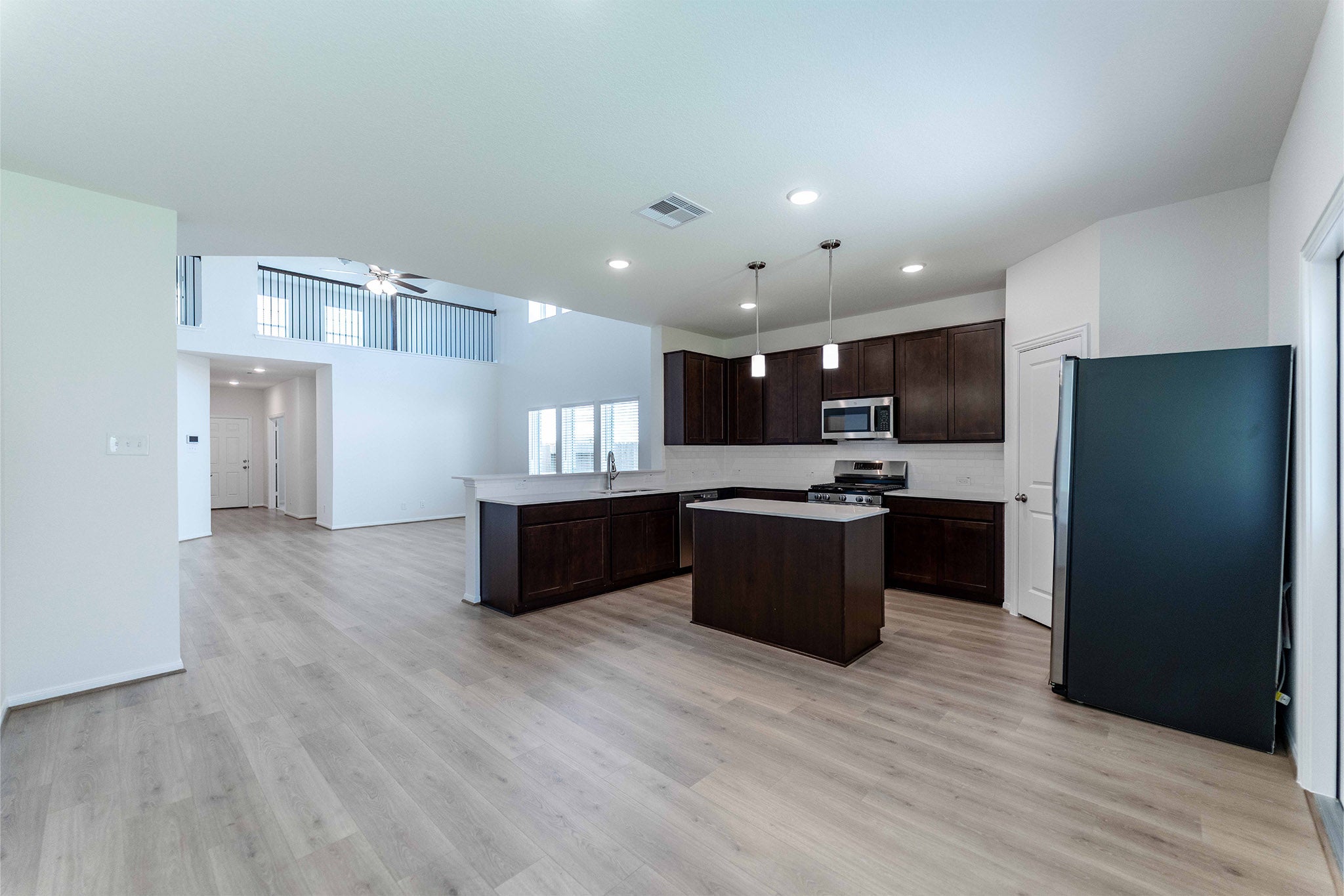 The wonderful, two-story Rio Grande home features an open-concept layout that is ideal for most any lifestyle. Upon entry, you are met with a private study room, a walk-in utility room, a closet, and access to your two-car garage. If you need extra storage space to store holiday decorations, tools, or even another car, opt to tack on an additional five feet for a two-and a half car garage or a full three-car garage! You are soon met with the soul of the home - the massive family room with two-story ceilings serving as the perfect place for entertaining, as well as the conjoined kitchen and breakfast area providing optimal convenience. The kitchen is fully equipped with sleek granite countertops, flat-panel birch cabinets, and industry-leading appliances. If you desire more counterspace, you have the option of including a kitchen island or extra cabinets! The high bar in the kitchen is ideal for the kids to eat breakfast in the mornings, and opens up to the family room, full embracing the open-concept feel. For the outdoor enthusiast, this home has the option of a spacious extended covered patio in the backyard. Head across the kitchen where you will discover the convenient downstairs powder room, and the secluded master suite. Your master bathroom is complete with cultured marble countertops, the option for dual vanities, and a large walk-in closet. Upgrade the master bathroom by opting for a luxury bathtub with stand alone shower or a master super shower instead! Follow up the stairs and you will come across an expansive game room, perfect for hosting family game nights, as well as the three remaining bedrooms with the second bedroom boasting a walk-in closet. The full secondary bath also sits upstairs in between the third and fourth bedrooms. As you can see, the Rio Grande floor plan can be personalized to fit your idea of your dream home the way you have always imagined. With the extensive features and options available, you cannot go wrong with the Rio Grande!