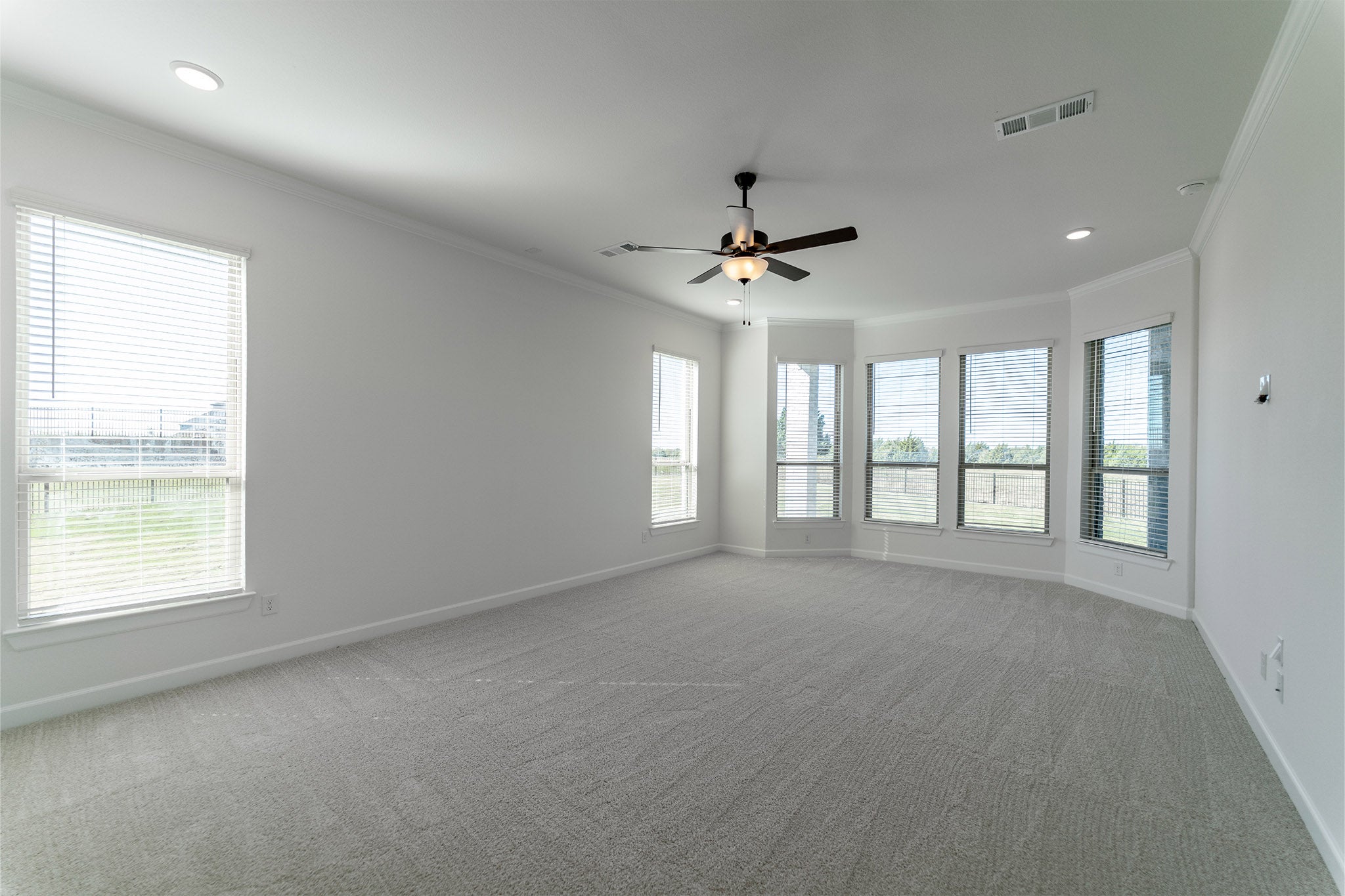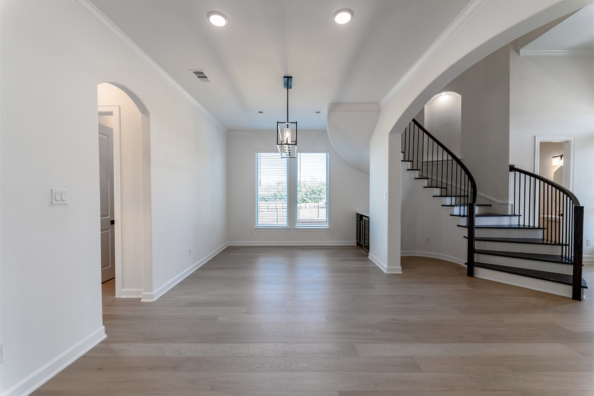This sprawling Laguna III floor plan will sweep you off your feet. Space is no issue in this five-bedroom, four-and-a-half bathroom home. The grand foyer boasts a beautiful spiral staircase, a convenient downstairs powder bathroom, a guest bedroom that you can transform into a secluded study room, the entry to your walk-in utility room and your two-car garage. You can even opt to include an extra half-car space in the garage for storing your tools and supplies or a two or three-car side load garage. The elegant gallery leads you to your welcoming formal dining room and your two-story family room that opens up to the island kitchen and conjoined breakfast room. Your kitchen is nothing short of luxurious with granite countertops, an island, and a huge walk-in pantry and butler's pantry allowing more storage space. Right off the breakfast room is the entry to your massive covered patio, perfect for spending time outdoors. Enjoy relaxing in your luxurious master suite with dual walk-in closets and double separate vanities. Upgrade your master bedroom by opting for an elegant bay window letting the natural light stream through, or add a door to your covered patio - the choice is yours. Up the grand staircase is a gameroom that your guests will love having game nights in, as well as an attached cozy media room that is perfect for movie nights at home with the family. Additionally, you are met with the three remaining bedrooms with walk-in closets and two full bathrooms. If you are not needing an extra bedroom, feel free to transform the fourth bedroom into a study room. Take your second story to new heights with the option of a covered balcony that all your friends and family can enjoy. The Laguna III boasts incredible options and desirable included features that will accommodate most any lifestyle. With this layout, you can personalize your Laguna III home the way you have always envisioned. Rest assured, you'll fall in love with this home and the open-concept layout.