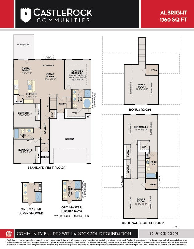The inviting Albright floor plan is a haven for comfort and joy! With three bedrooms, two bathrooms, and an upstairs bonus room, the family will have plenty of space. As you step inside, you're met with the open foyer area and gallery that give you access to the secondary and third bedrooms with a bathroom between the two rooms. You are then led straight to the airy, open-concept living areas, like the great room, casual dining space, and kitchen. If you enjoy a nice fire now and then, you can opt to include a fireplace in the great room! The kitchen is a culinary masterpiece adorned with gleaming countertops and adorned with industry-leading appliances. A walk-in pantry also offers ample storage space for all your essentials. Step outside onto the deck or patio, where you can enjoy your morning coffee or the spectacular view that this community has to offer. Beside the great room is your private master suite with dual sinks, a separate tub & shower, and a sizable walk-in closet! If you want to add a touch of luxury, you can turn the shower into a super shower, or opt for a free-standing tub. Upstairs resides the bonus room, a versatile space brimming with endless possibilities. Whether it's a cozy reading nook, a playroom for the little ones, or a home office bathed in natural light, this enchanting retreat is yours to customize and enjoy.