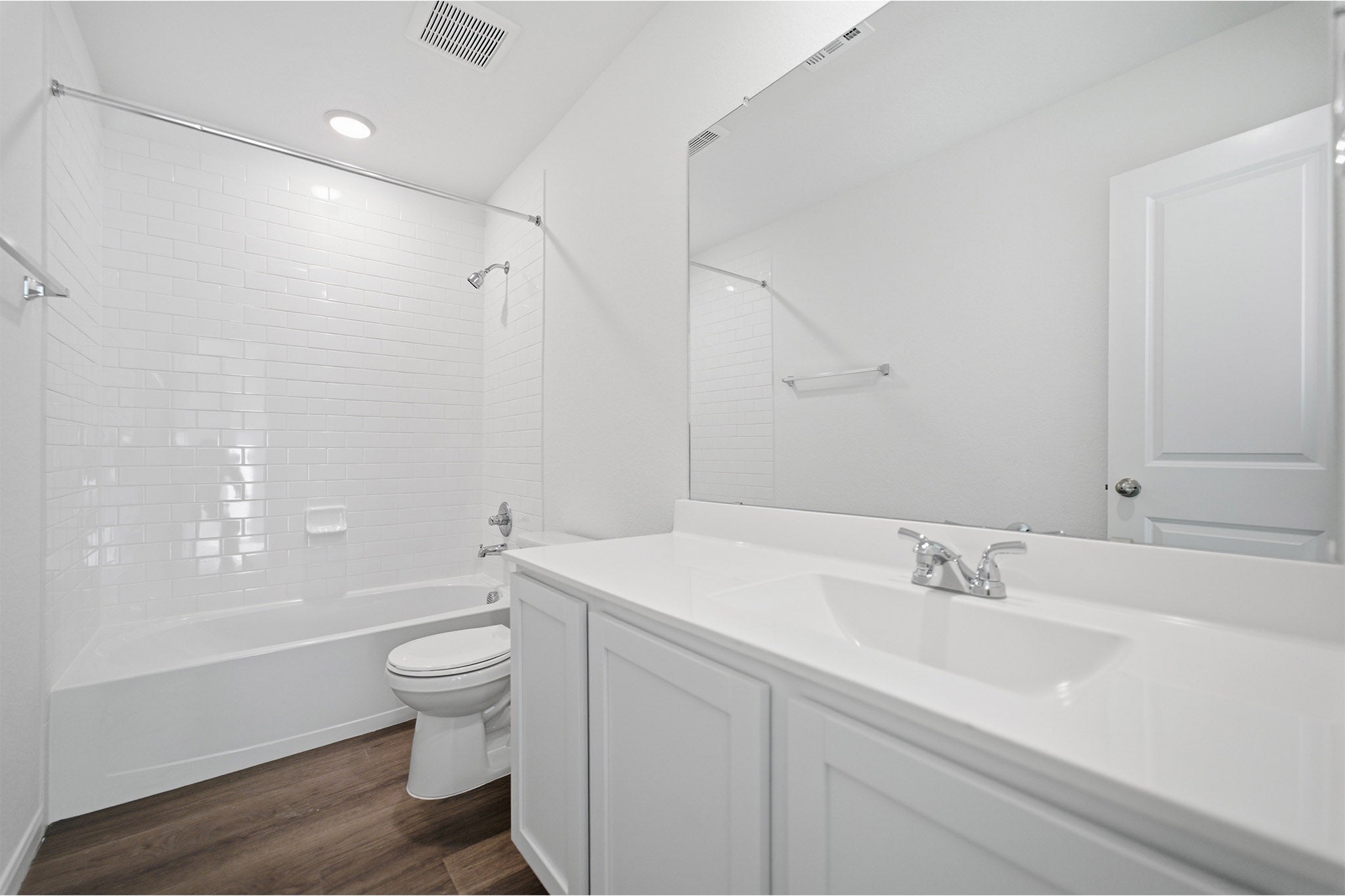 The delightful Ash floor plan is a sprawling, two-story design that is full of character. The exterior of the home is just as beautiful as the interior since the home will have a two-tone paint selection, and an exclusive landscaping package including shrubs, a caliper oak tree, and a yard that is fully sodded. Entering from your front porch, you are greeted by an elegant foyer with vinyl plank flooring that your two-car garage lies beside. Across the foyer is your convenient powder bathroom featuring a white pedestal sink and decorative mirror that flows right into your open-concept family room. The massive family room is perfect for entertaining guests and is boasting with ample amount of space. The smell of fresh cookies baking can be experienced from the family room, since the kitchen is opened up facing the living area. The expansive kitchen area is completed with granite countertops, beautiful flat-panel birch cabinets, designer light fixtures, and industry-leading appliances. You will love having the ability to install a kitchen island in the center of the kitchen, if you are needing more counter space. Speaking of more space, your oversized walk-in pantry will come in handy when you need to store all your food, spices, and dog treats. Integrating with your kitchen is your welcoming formal dining space with entry to your backyard in the corner of the room. Giving your backyard added value, you have the option of including a sizable covered patio! Adjacent to your formal dining room is the large Master Bedroom. Leading off the bedroom is your gorgeous master bathroom complete with cabinetry that matches your kitchen selections, cultured marble bath countertops, LED down lighting, and a super shower. Up the stairs, you will come across a large gameroom that is ideal for family game nights, as well as three additional bedrooms, and a secondary full bathroom. The Ash floor plan is sure to fit most any family lifestyle.