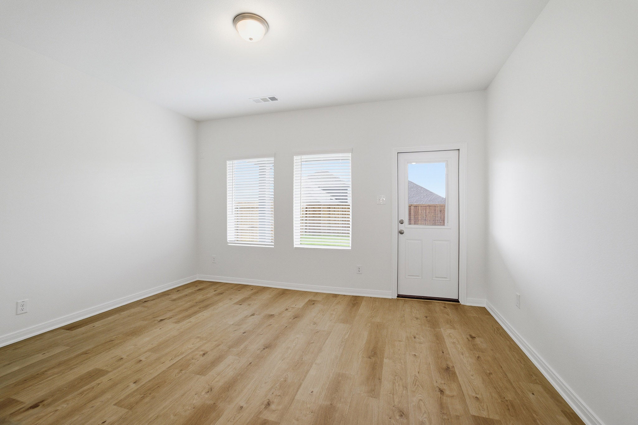 The delightful Ash floor plan is a sprawling, two-story design that is full of character. The exterior of the home is just as beautiful as the interior since the home will have a two-tone paint selection, and an exclusive landscaping package including shrubs, a caliper oak tree, and a yard that is fully sodded. Entering from your front porch, you are greeted by an elegant foyer with vinyl plank flooring that your two-car garage lies beside. Across the foyer is your convenient powder bathroom featuring a white pedestal sink and decorative mirror that flows right into your open-concept family room. The massive family room is perfect for entertaining guests and is boasting with ample amount of space. The smell of fresh cookies baking can be experienced from the family room, since the kitchen is opened up facing the living area. The expansive kitchen area is completed with granite countertops, beautiful flat-panel birch cabinets, designer light fixtures, and industry-leading appliances. You will love having the ability to install a kitchen island in the center of the kitchen, if you are needing more counter space. Speaking of more space, your oversized walk-in pantry will come in handy when you need to store all your food, spices, and dog treats. Integrating with your kitchen is your welcoming formal dining space with entry to your backyard in the corner of the room. Giving your backyard added value, you have the option of including a sizable covered patio! Adjacent to your formal dining room is the large Master Bedroom. Leading off the bedroom is your gorgeous master bathroom complete with cabinetry that matches your kitchen selections, cultured marble bath countertops, LED down lighting, and a super shower. Up the stairs, you will come across a large gameroom that is ideal for family game nights, as well as three additional bedrooms, and a secondary full bathroom. The Ash floor plan is sure to fit most any family lifestyle.