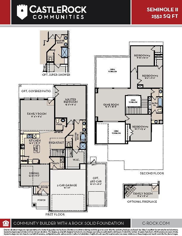 The gorgeous Seminole II floor plan offers something for each member of the family to enjoy. The formal dining space and two-story family room make this home a must-see. Entering the home, you are greeted by the welcoming formal dining room attached to your expansive kitchen that holds all the space you could want with a combined breakfast area for optimal convenience. Your kitchen boasts exquisite included features such as sleek granite countertops with a ceramic tile backsplash, industry-leading appliances, and a huge pantry. You are even given the option to include a kitchen island for more counterspace! Just beside your kitchen is the stairway to the second floor, as well as the entry to your walk-in utility room and two-car garage. Need another space for a third vehicle? Lucky for you - the Seminole II offers a third-car garage option to accommodate you. Back inside past the kitchen area is your massive family room that you have the option of amazing your guests with a stylish fireplace, and boasts entry to your optional covered patio - perfect for backyard barbecues and spending time with friends and family. This unique floor plan showcases a layout that is ideal for any size of gathering. Completing the downstairs is your convenient downstairs powder bathroom, and a private master bedroom. Your large master bathroom features cultured marble countertops with dual vanities, a bathtub with a stand-alone shower, and a sizable walk-in closet. Elevate your master bathroom by choosing to replace your bathtub with a super shower instead! With either option, you will be living in luxury. Head up the stairs where you will discover a large game room - a sanctuary that the kids will love, a full, jack-and-jill secondary bathroom, and three additional bedrooms with two bedrooms containing walk-in closets. The Seminole II plan will surely not disappoint. With favorable options and unique features available, you will be dreaming of the incredible Seminole II home!