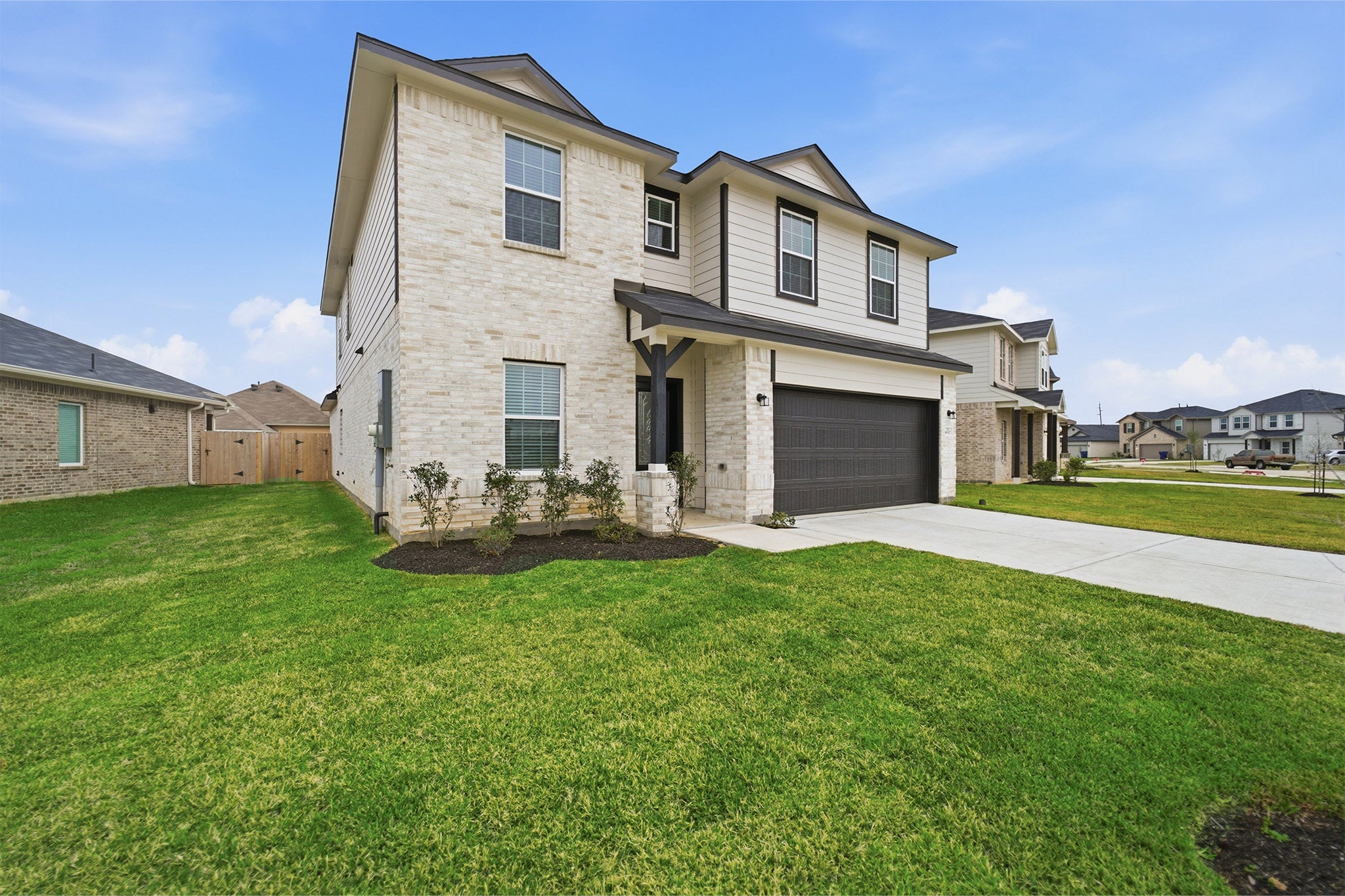 Every square foot is maximized with our Concho plan – the ideal home for the growing family. This 4-bedroom home offers space, flexibility and comfort. Entering your new home from your spacious porch, you are met with a foyer leading to your secluded study room. If you are looking for a little more living space, opt to transform the study room into your fifth bedroom! Travel further down the hall and you will discover the entry to your walk-in utility room and the convenient downstairs powder room. Need a little more room for your tools or holiday decorations? Luckily, the Concho plan bears a standard 2.5-car garage! Past the utility room, and you are led to the heart of the home - the open-concept, two-story family room adjoined by the oversized kitchen and breakfast area. The kitchen accommodates sleek granite countertops, flat-panel birch cabinets (with the option to add more), as well as a kitchen island! One of the most exclusive options this floor plan offers is the ability to add in an extended covered patio off the kitchen area. Talk about the perfect outdoor sanctuary! Finally, the first floor holds your private master suite with an elegant master bathroom. The master bathroom holds cultured marble countertops with the option of dual vanities, a shower/bathtub enclosure, and an expansive walk-in closet! If you are interested in taking the bathroom space to the next level you have the option to turn your bathtub into a super shower, or opt for a luxury tub with shower - both with standard dual vanities! Roam up the stairs to the second floor which is filled with three additional bedrooms, two full bathrooms and an oversized game room perfect for game nights with the family. In the Concho home, you will never have to sacrifice your space or comfort. There is something for the entire family to enjoy! With the copious amounts of included features and favorable options, you can bring your visions to life and will truly cherish your new CastleRock Concho home!