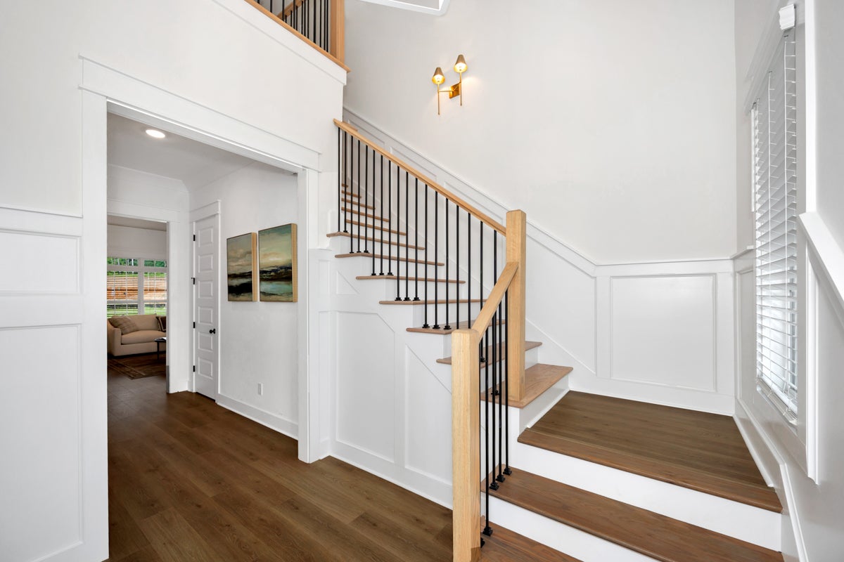 Introducing the Ash B floorplan, a bold 4 bedroom and 3-and-a-half-bathroom layout that provides you with the full ability to personalize your home to best suit you or your family’s needs. Step onto the welcoming front porch of the Ash B and into a thoughtfully designed home that blends comfort and versatility. The foyer serves as your central hub, guiding you toward the staircase, the private master suite, or the spacious family room. The luxurious master suite comes equipped with dual vanities and a large walk-in closet to provide the ultimate relaxing haven to unwind after a long day. The heart of the home features an open-concept layout where the family room, breakfast area, and island kitchen flow seamlessly together perfectly for gatherings and everyday living. From here, you’ll enjoy easy access to the rear porch where you can enjoy a morning coffee or evening beverage, a convenient walk-in pantry, and both the single and two-car garages along with the mudroom and laundry room space. Downstairs also includes a secondary bedroom with its own full bath, ideal for guests or multi-generational living. Upstairs, discover two additional bedrooms and a shared bath, plus an expansive bonus area that’s yours to customize. Whether you envision a game room, media space, craft corner, home office, or cozy lounge, the Ash B offers endless possibilities to fit your lifestyle.