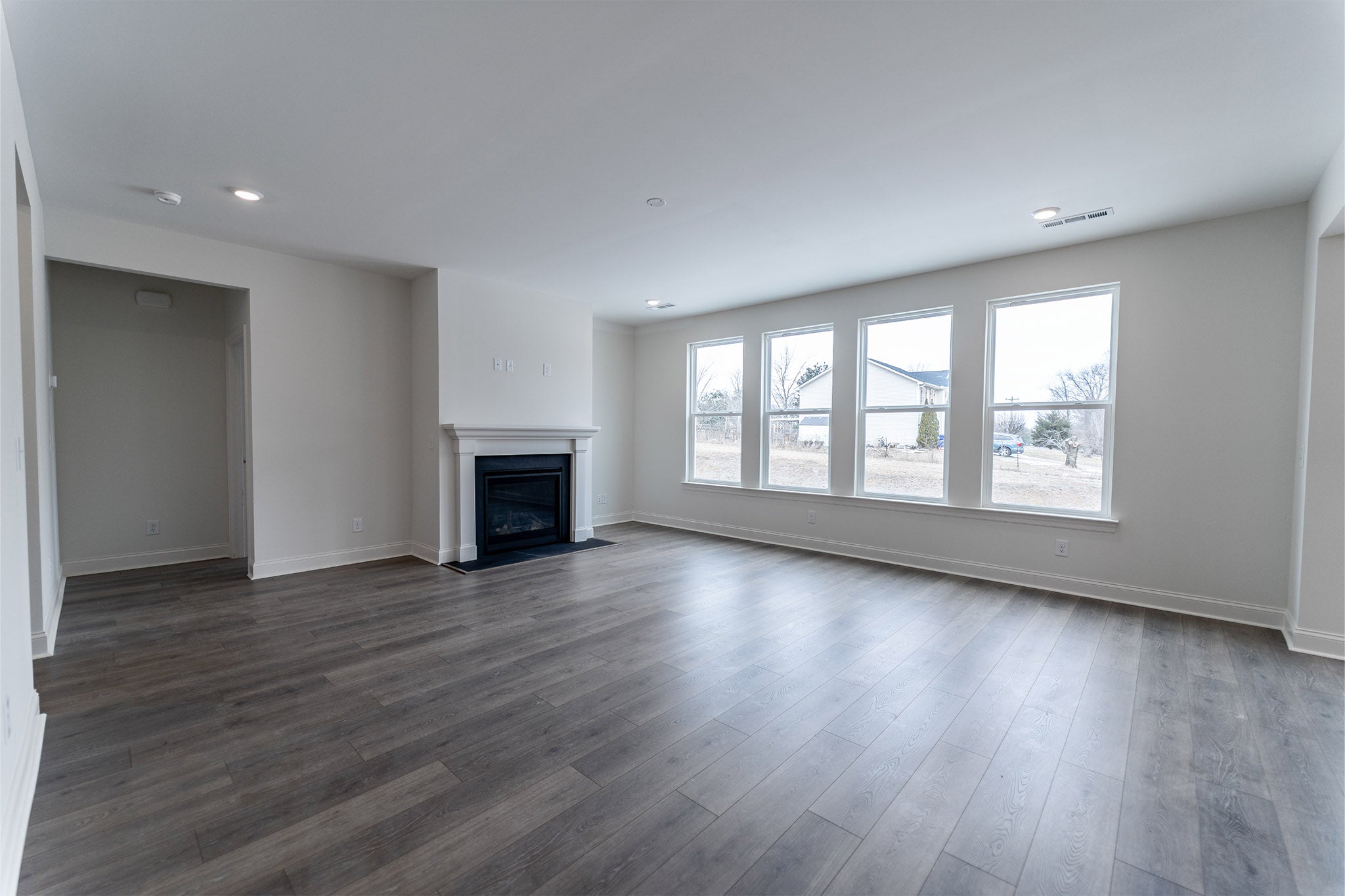 The Drayton plan features four bedrooms, two-and-a-half bathrooms, and a flexible open-concept layout designed for both comfort and customization!