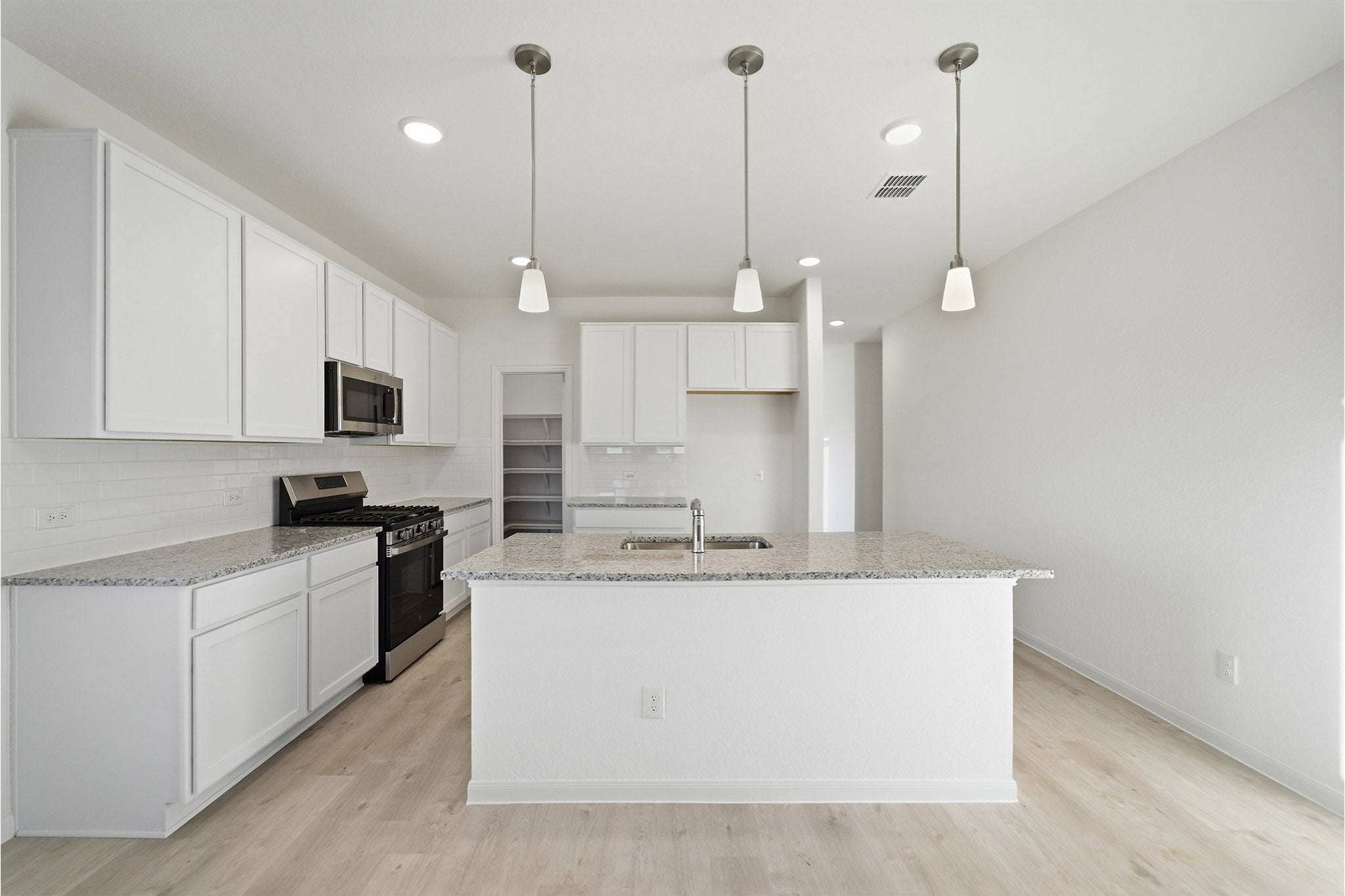 The charming, one-story Maple home is packed with all the essentials. No matter what stage of life you are in, this floor plan is for you. Entering your new home, you are greeted by a foyer area attached to your convenient powder bathroom, a storage closet and access to your spacious two-car garage. Down the long hallway is your inviting formal dining room - perfect for hosting dinner parties or having your whole family over for the holidays. Entertaining is made comfortable with the adjoined kitchen, breakfast and family room. Leading to your kitchen is your walk-in utility room next to your oversized walk-in pantry! Your kitchen and combined breakfast area boasts provides optimal convenience with a ton of space and features sleek granite countertops, flat-panel birch cabinets, designer light fixtures and a kitchen island with a built-in stainless steel sink! Never miss out on the action with your open-concept family room that faces the kitchen and breakfast areas. Your family room also grants you access to your optional covered patio - ideal for those who want to embrace the outdoors. When it is time to relax, head over to your roomy master suite including a large walk-in closet, cultured marble countertops, and a generously-sized master super shower! The secondary and third bedrooms can be found right off the family room, with the full secondary bath residing in between the two. CastleRock takes pride in building quality homes with exclusive energy-efficient features keeping you and your family in mind. That's why we offer features like low E3 windows, third-party inspected insulation, and lighting that reduces heat throughout the home, therefore providing the ultimate comfort you are looking for in your new home. With the favorable options and energy-efficient features included in the Magnolia home, you and your family will cherish your new home for years to come. Trust us when we say you cannot go wrong with this plan!