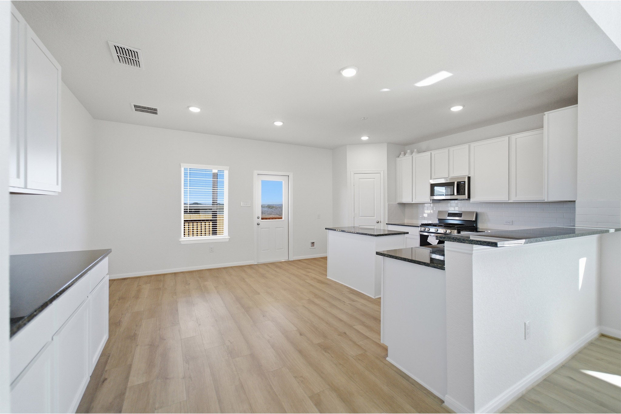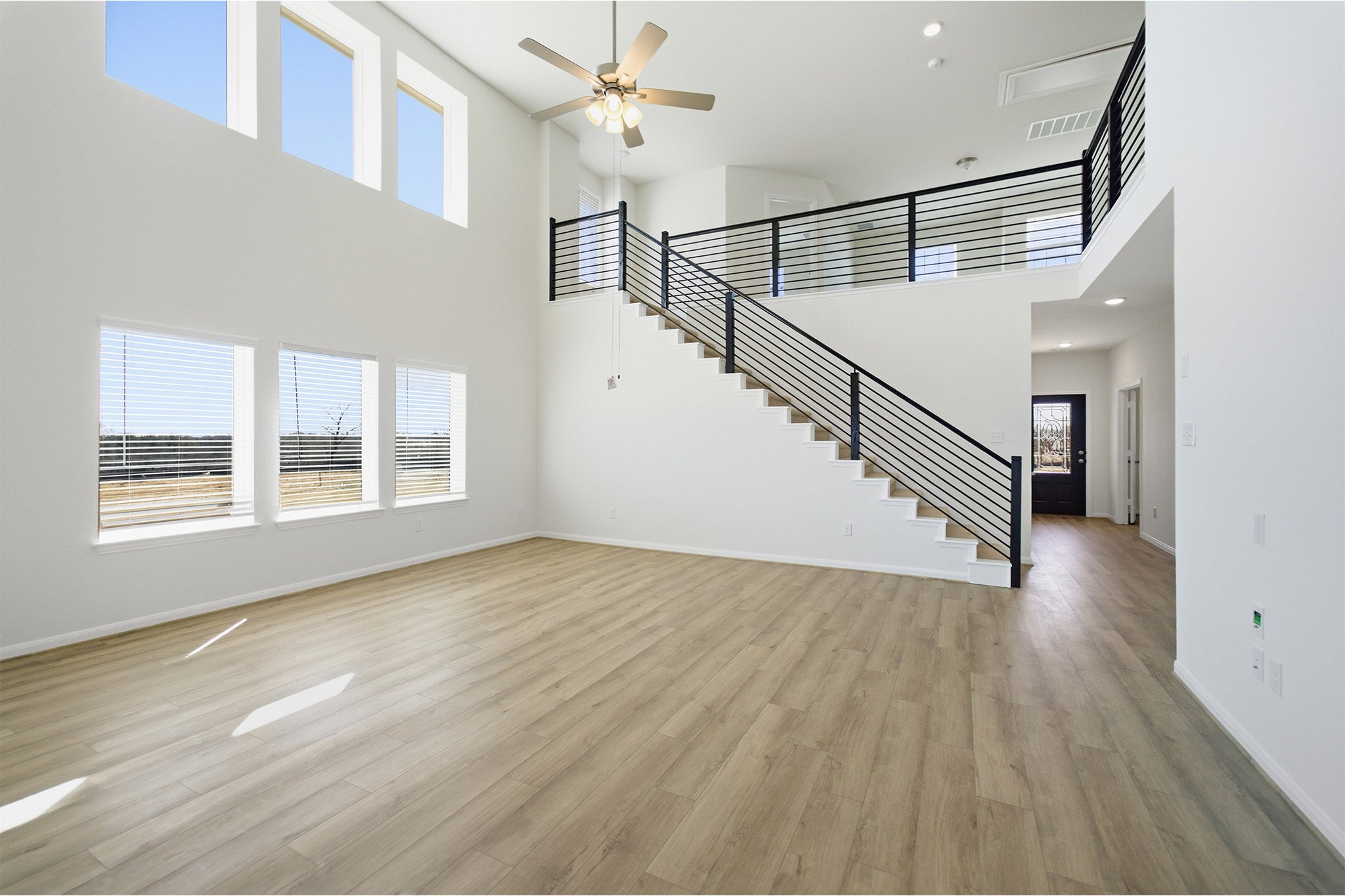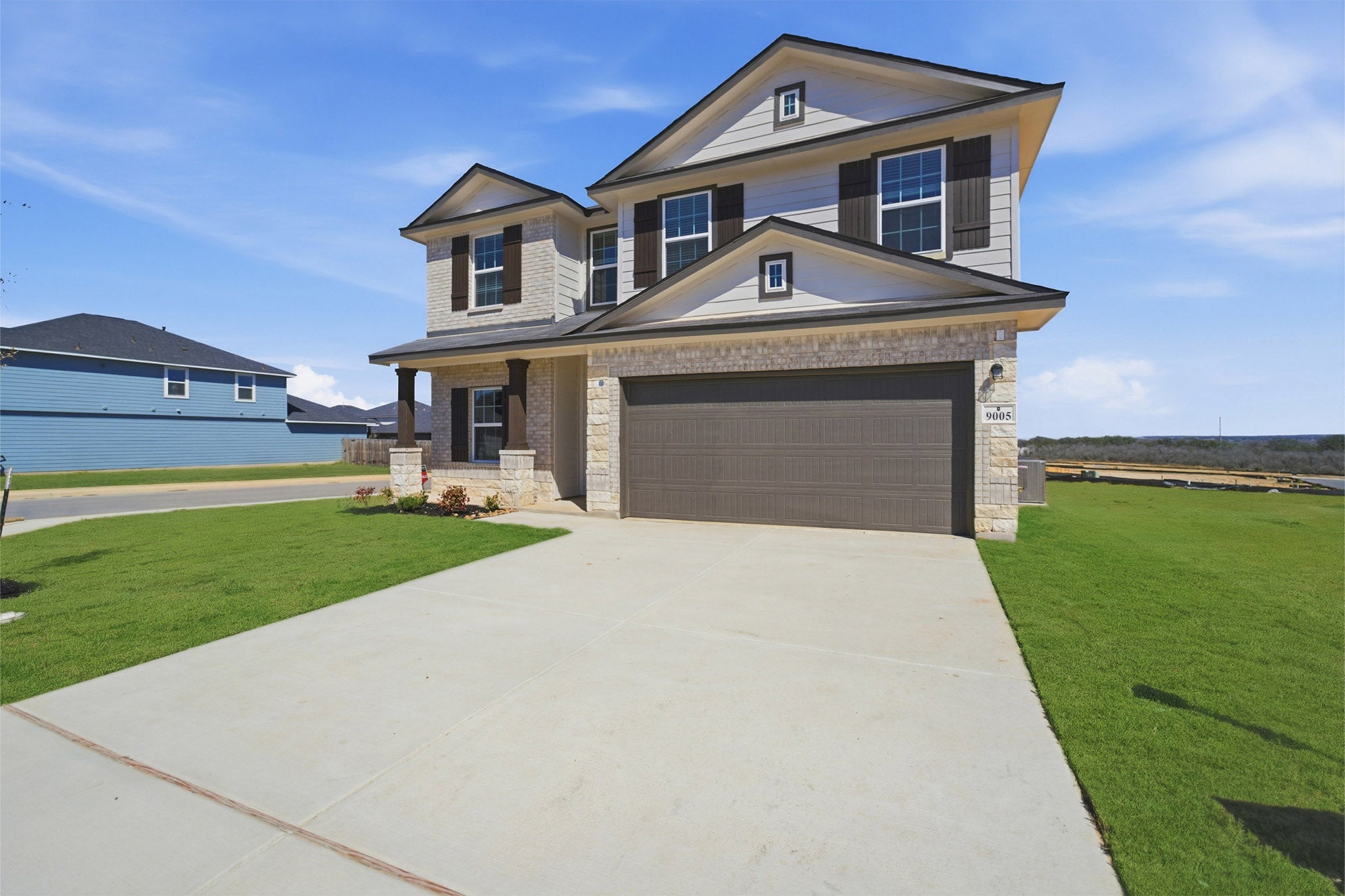 Our grandest home in the Cobalt Series, the Trinity floor plan boasts an impressive two-story floor plan that is sure to suit most any lifestyle. Upon entry, you are first greeted by the private study room that also has the option of transforming into a fifth bedroom if you would rather have the space for more guests to visit. Next, you will find the access to your convenient downstairs powder room, a walk-in utility room, as well as the entry to your two-and-a-half-car garage. Needing more storage for another car? Opt to swap your standard two-car garage for a sizable three-car garage! Down the hall, you will reach the heart of your home - the massive, two-story family room with soaring ceilings and consisting of plenty of natural light. Opening up to the family room is the convenient adjoined kitchen and breakfast area with access to your optional extended covered patio. Your elegant kitchen comes fully equipped with industry-leading appliances, sleek granite countertops with a ceramic tile backsplash, designer light fixtures, and the option to put in an island and extra cabinets if you desire more counterspace. With features like these, you will want to cook every meal! Completing the first floor is your secluded Master suite with your master bathroom containing the cultured marble countertops with option of dual vanities, a shower/bathtub enclosure, and a huge walk- in closet. Upgrade your bathroom space to include a master luxury bath with stand alone shower or a master super shower instead! Both options come with standard dual vanities for your convenience. Finally, up the stairs you will discover a fantastic gameroom perfect for hosting the ultimate game night, as well as the second, third, and fourth remaining bedrooms. The full secondary bathroom also lies upstairs between the second and third bedrooms. The Trinity has the perfect amount of space for the entire family. You won't compromise your comfort and functionality in the Trinity floor plan!