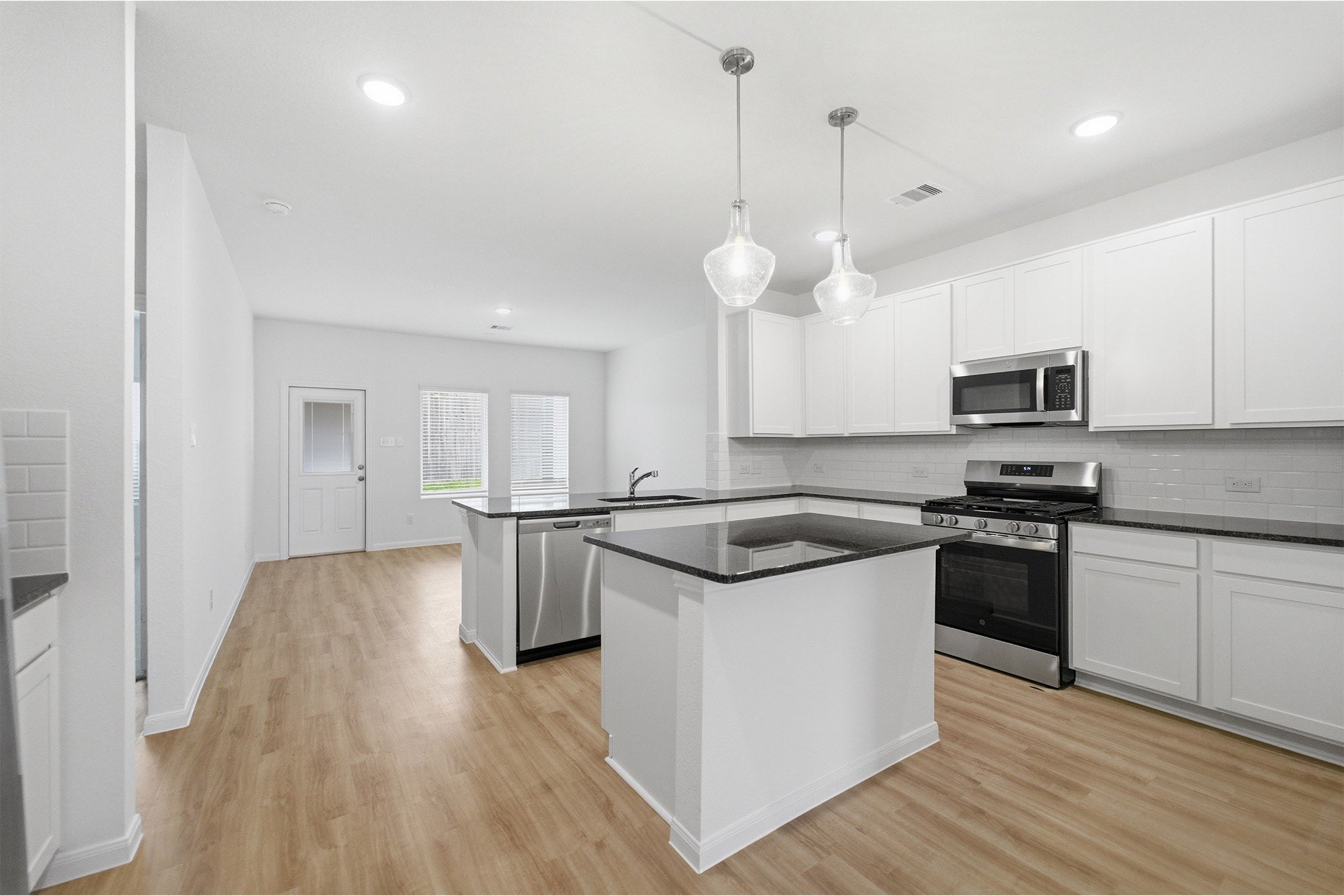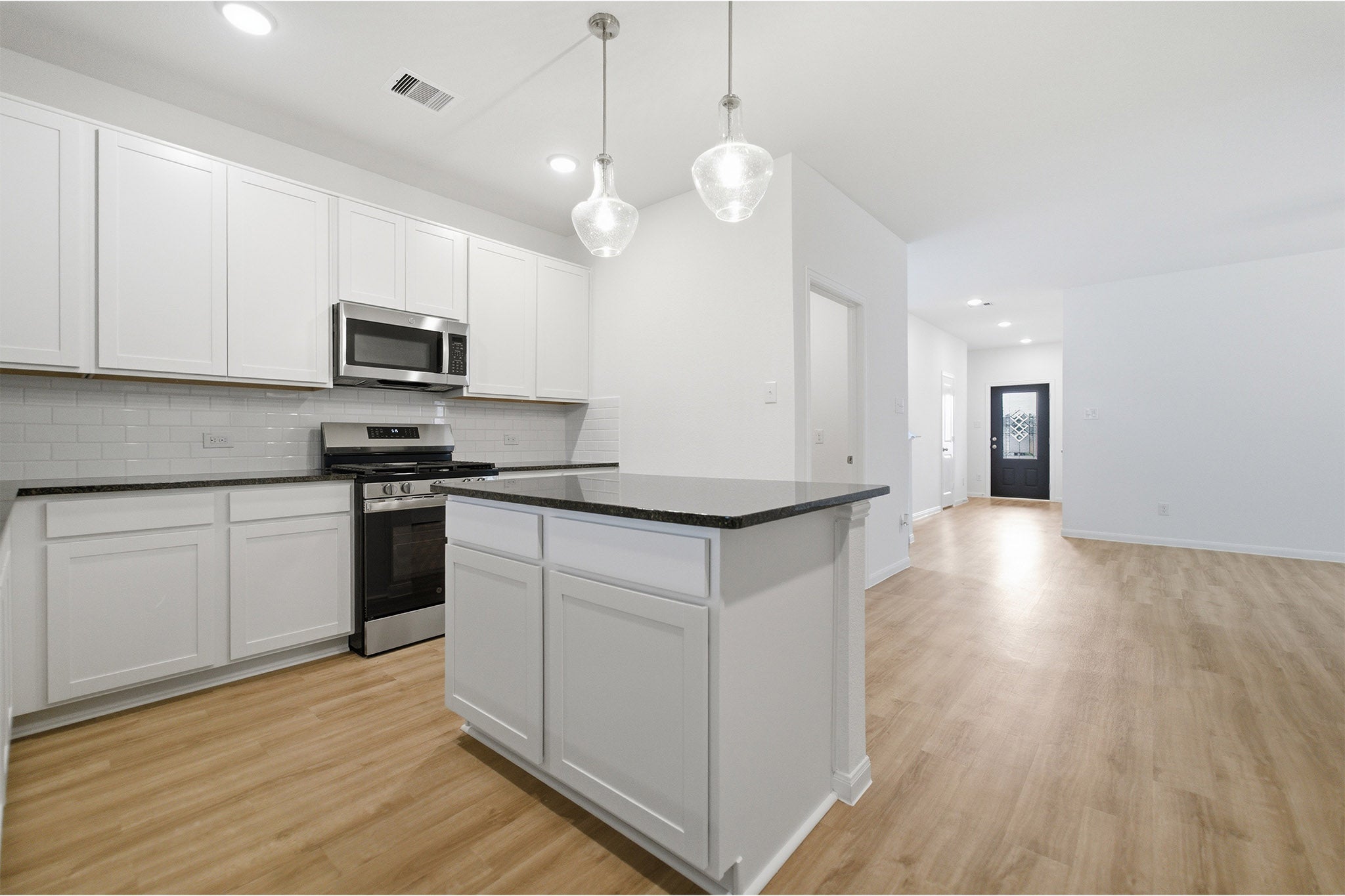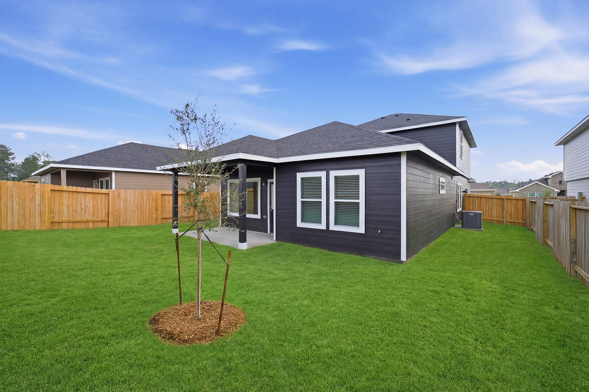 The delightful Ash floor plan is a sprawling, two-story design that is full of character. The exterior of the home is just as beautiful as the interior since the home will have a two-tone paint selection, and an exclusive landscaping package including shrubs, a caliper oak tree, and a yard that is fully sodded. Entering from your front porch, you are greeted by an elegant foyer with vinyl plank flooring that your two-car garage lies beside. Across the foyer is your convenient powder bathroom featuring a white pedestal sink and decorative mirror that flows right into your open-concept family room. The massive family room is perfect for entertaining guests and is boasting ample amount of space. The smell of fresh cookies baking can be experienced from the family room, since the kitchen is opened up facing the living area. The expansive kitchen area is completed with granite countertops, beautiful flat-panel birch cabinets, designer light fixtures, and industry-leading appliances. You will love having the ability to install a kitchen island in the center of the kitchen, if you are needing more counter space. Speaking of more space, your oversized walk-in pantry will come in handy when you need to store all your food, spices, and dog treats. Integrating with your kitchen is your welcoming formal dining space with entry to your backyard in the corner of the room. Giving your backyard added value, you have the option of including a sizable covered patio! Adjacent to your formal dining room is the large Master Bedroom. Leading off the bedroom is your gorgeous master bathroom complete with cabinetry that matches your kitchen selections, cultured marble bath countertops, LED down lighting, and a super shower. Up the stairs, you will come across a large gameroom that is ideal for family game nights, as well as three additional bedrooms, and a secondary full bathroom. The Ash floor plan is sure to fit most any family lifestyle.