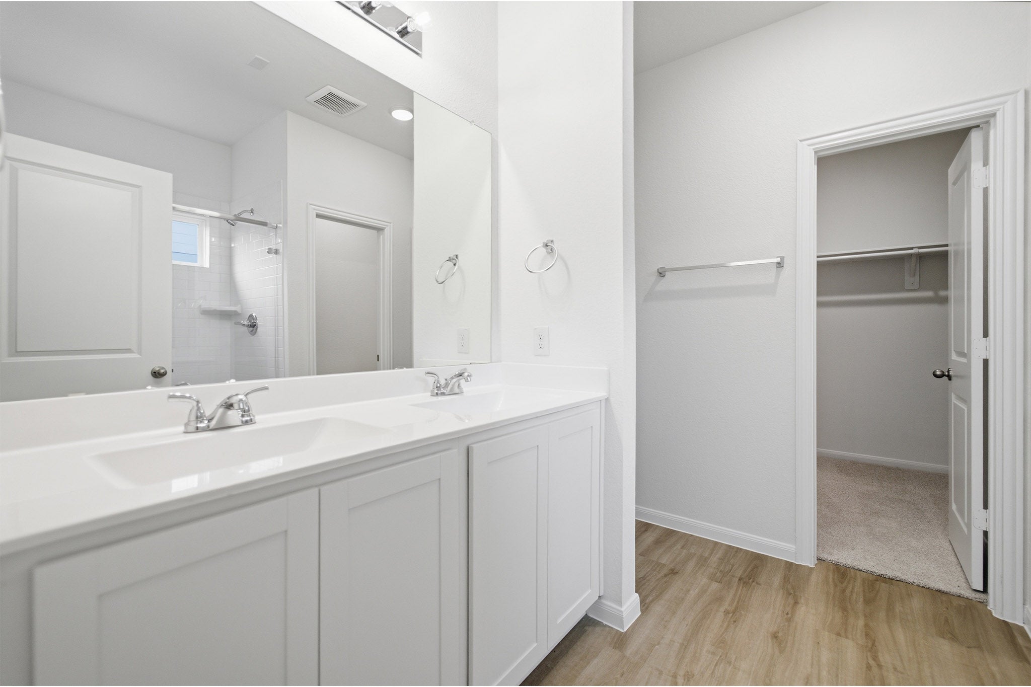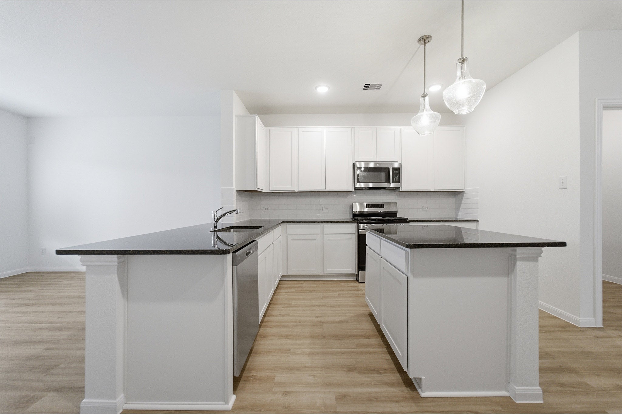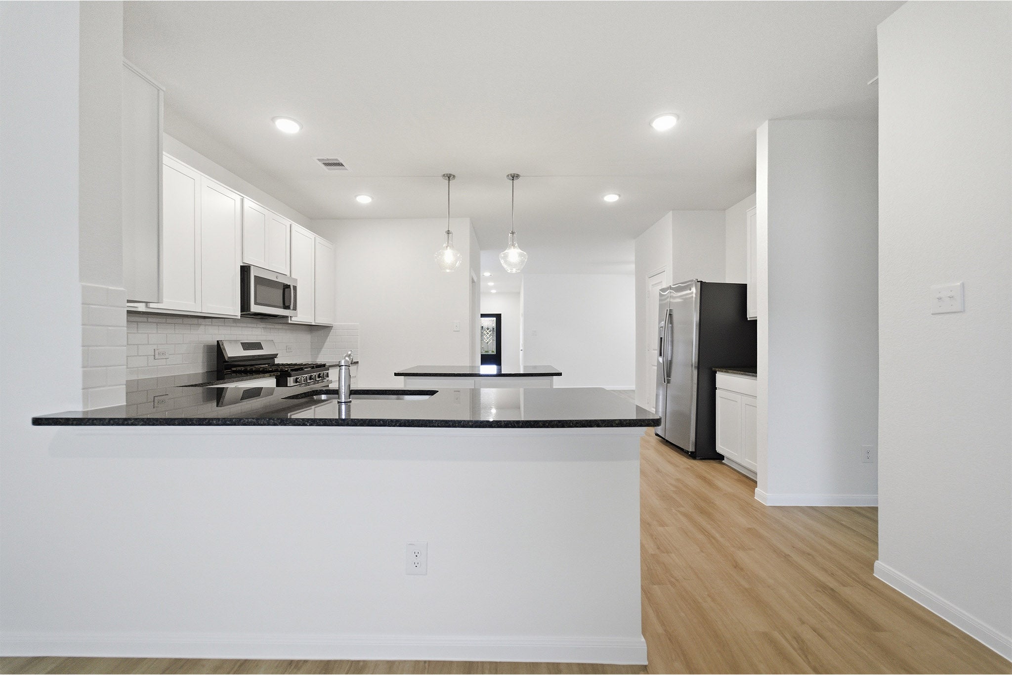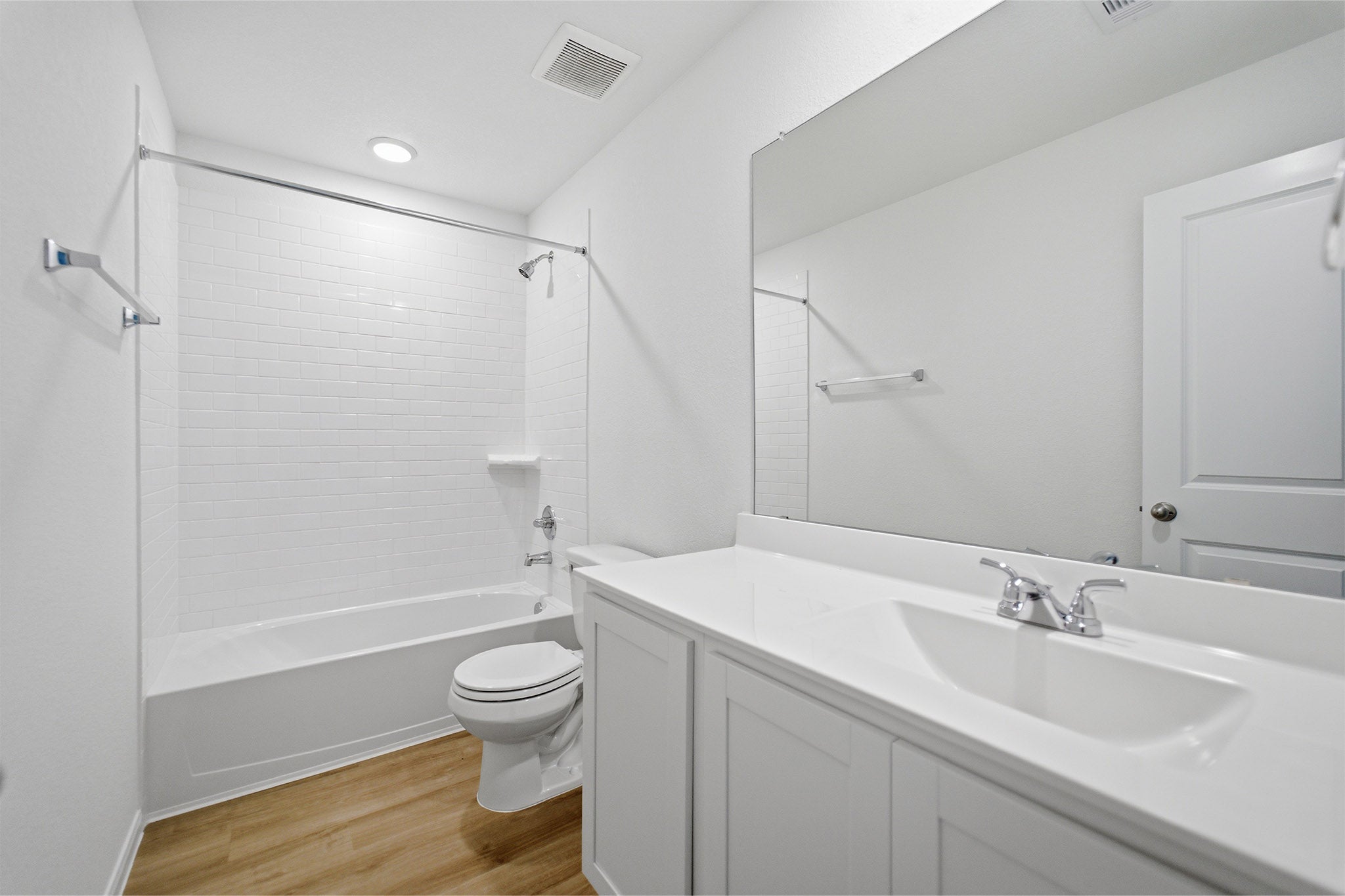 The delightful Ash floor plan is a sprawling, two-story design that is full of character. The exterior of the home is just as beautiful as the interior since the home will have a two-tone paint selection, and an exclusive landscaping package including shrubs, a caliper oak tree, and a yard that is fully sodded. Entering from your front porch, you are greeted by an elegant foyer with vinyl plank flooring that your two-car garage lies beside. Across the foyer is your convenient powder bathroom featuring a white pedestal sink and decorative mirror that flows right into your open-concept family room. The massive family room is perfect for entertaining guests and is boasting ample amount of space. The smell of fresh cookies baking can be experienced from the family room, since the kitchen is opened up facing the living area. The expansive kitchen area is completed with granite countertops, beautiful flat-panel birch cabinets, designer light fixtures, and industry-leading appliances. You will love having the ability to install a kitchen island in the center of the kitchen, if you are needing more counter space. Speaking of more space, your oversized walk-in pantry will come in handy when you need to store all your food, spices, and dog treats. Integrating with your kitchen is your welcoming formal dining space with entry to your backyard in the corner of the room. Giving your backyard added value, you have the option of including a sizable covered patio! Adjacent to your formal dining room is the large Master Bedroom. Leading off the bedroom is your gorgeous master bathroom complete with cabinetry that matches your kitchen selections, cultured marble bath countertops, LED down lighting, and a super shower. Up the stairs, you will come across a large gameroom that is ideal for family game nights, as well as three additional bedrooms, and a secondary full bathroom. The Ash floor plan is sure to fit most any family lifestyle.