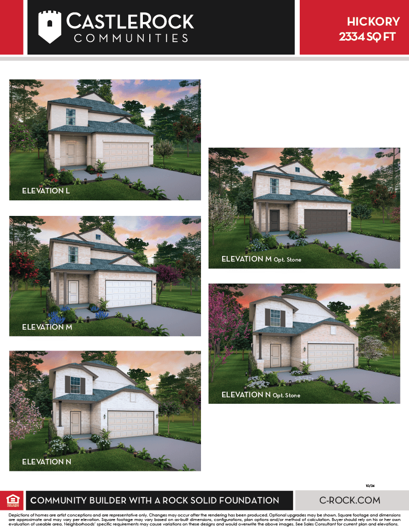 Boasting an open-concept layout consisting of four large bedrooms, and 2.5 bathrooms, the Hickory home is nothing short of practical! Entering the home, you are greeted by the foyer area and convenient downstairs powder room. You are then led to the central area of the home featuring the combined kitchen and dining area. The kitchen includes plenty of countertop space with an island, granite countertops, designer light fixtures, and industry-leading appliances. Facing the kitchen & dining area is the spacious family room with access to the backyard - if you'd love to enjoy a cup of coffee outside in the morning, opt to include a covered patio! Completing the first floor is the large master suite. The attached master bathroom includes a super shower, cultured marble countertops, as well as a huge walk-in closet. Upstairs resides the game room, perfect for the kids, three additional bedrooms with walk-in closets, and another full bathroom. With enough room to sprawl out, the Hickory plan is perfectly sized to accommodate most any sized family!