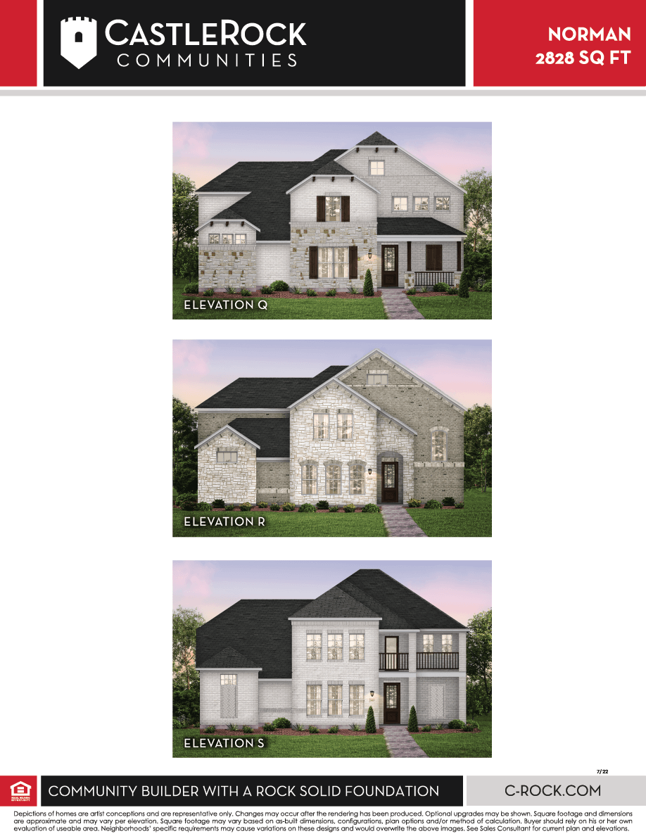 The Norman floor plan is comprised of four bedrooms, three full bathrooms, and several desirable included options and features! The inviting front porch allows you to soak in the fresh air outdoors. Following the spacious front porch is the foyer which leads to the secondary bedroom with a walk-in closet, and the secondary bathroom complete with a combined shower/tub enclosure. If you prefer, you can opt to upgrade to the super shower! The foyer also leads to the combined family room and kitchen space, perfect for hosting family and friends. The kitchen includes an island, designer light fixtures, flat-panel birch cabinets, industry-leading appliances, sleek granite countertops, and a walk-in pantry. If you love to cook, consider upgrading the standard kitchen to a designer kitchen! In the family room, admire the two-story ceilings, while having the option to include a gas log. Across from the kitchen is the dining area, along with access to the backyard. If you love spending time outdoors, opt to include a covered patio! Around the corner is the mud room, utility room, two-car garage access, as well as entry to your private master suite. The ensuite master bathroom is complete with cabinets matching your kitchen selection, cultured marble countertops, designer light fixtures, dual separate vanities, a linen closet, a separate tub and shower, and a huge walk-in closet. If you choose, you can even choose to swap the tub for a super shower! Returning to the front of the home and up the stairs, you will find the hallway leading to a secluded third bedroom with a walk-in closet. Next door is the third full bathroom which, just like bathroom #2 and the master, has the option to upgrade the tub/shower enclosure to a super shower. Next is the game room, a perfect space for kids and adults alike, followed by the fourth bedroom with a walk-in closet. Storage space is not lacking in this uniquely designed home.