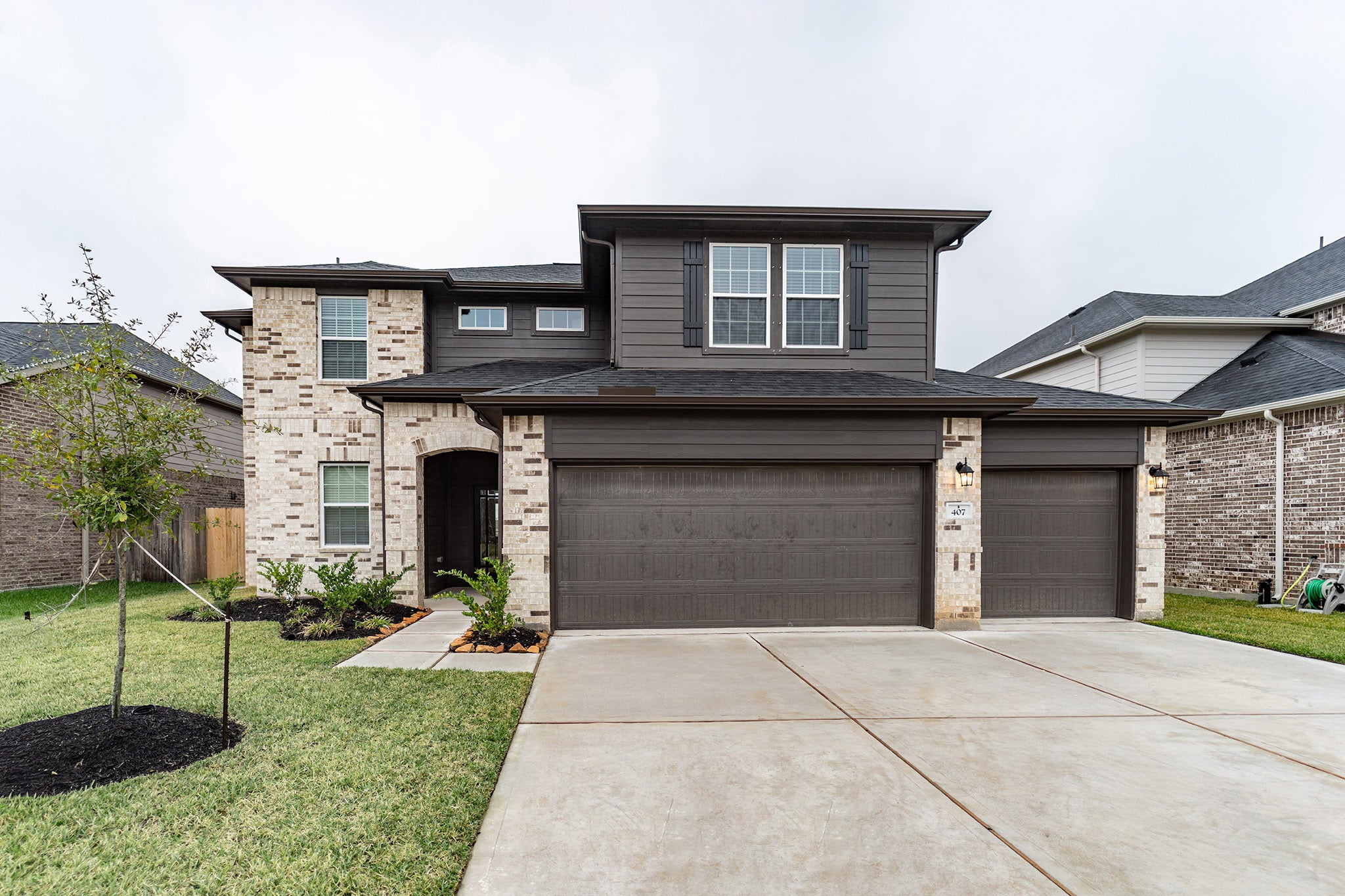 A contemporary design with traditional elements, the San Marcos plan offers a unique layout that suits most any lifestyle. As soon as you enter this elegant home, you are met with the convenient downstairs powder room, a walk-in utility room, and a beneficial computer niche that connects to your spacious kitchen. You are also met with your two-car garage that you have the ability of transforming into a two-and a half -car or three-car garage providing excellent storage space. Amidst your elegant staircase is the curved dining area that adds a custom feel to this innovative design. Across from the unique dining space is the kitchen featuring granite countertops, a walk-in pantry room, a raised bar perfect for when the kids eat breakfast each morning, as well as the option for a kitchen island if you are needing additional counterspace. The kitchen opens up into the massive family room, creating a great space for entertaining gatherings of any size for any occasion. If you crave quality time spent outdoors, the San Marcos plan offers you the option of a huge covered patio that your whole family and friends can enjoy. Completing the first floor is your secluded master suite. Your master bathroom is complete with separated dual vanities with cultured marble countertops, a bathtub, a stand-alone shower, and an enormous walk-in closet. Enhance your master bathroom by including a super shower instead of a bathtub! Wander up the stairs, where you will find a perfectly-sized gameroom for the kids to have a sanctuary of their own or host game nights with friends. Each bedroom has a unique quality that gives them optimal value. The second bedroom is the largest allows a third bathroom if you prefer, the third bedroom boasts a convenient sitting area/flex space, and the fourth bedroom sits secluded from the others right beside the gameroom. Between the third and fourth bedrooms is the secondary full bathroom with the option for dual vanities. You will love the San Marcos!