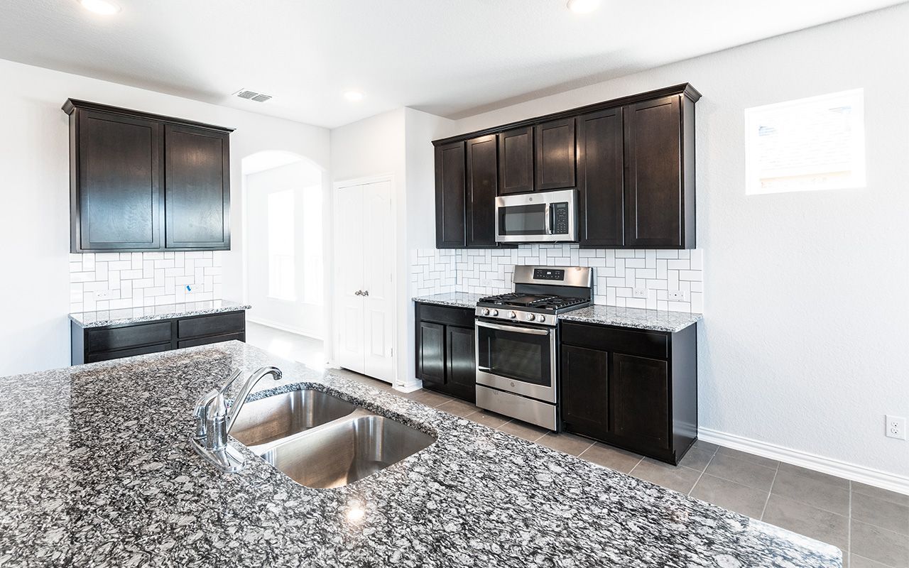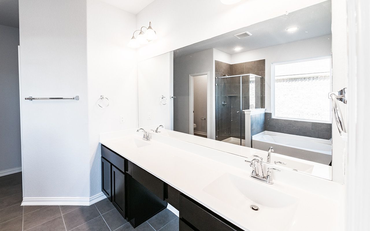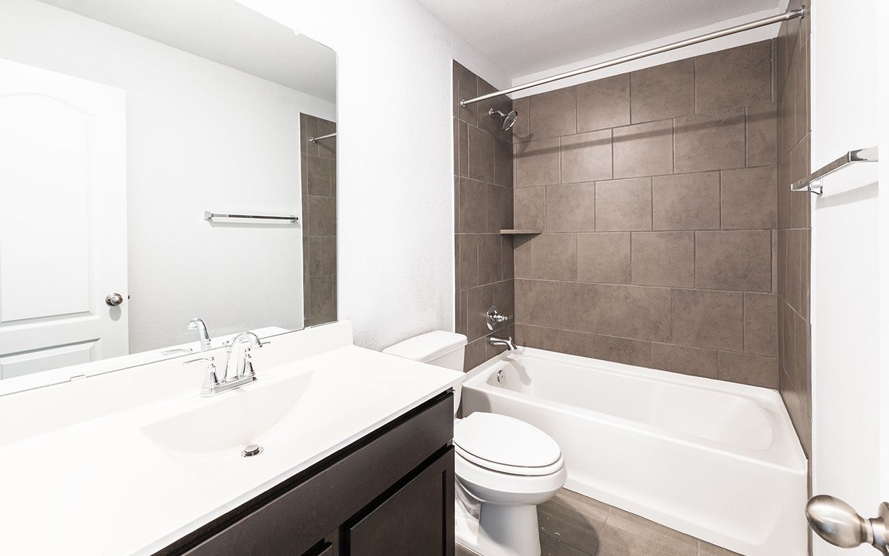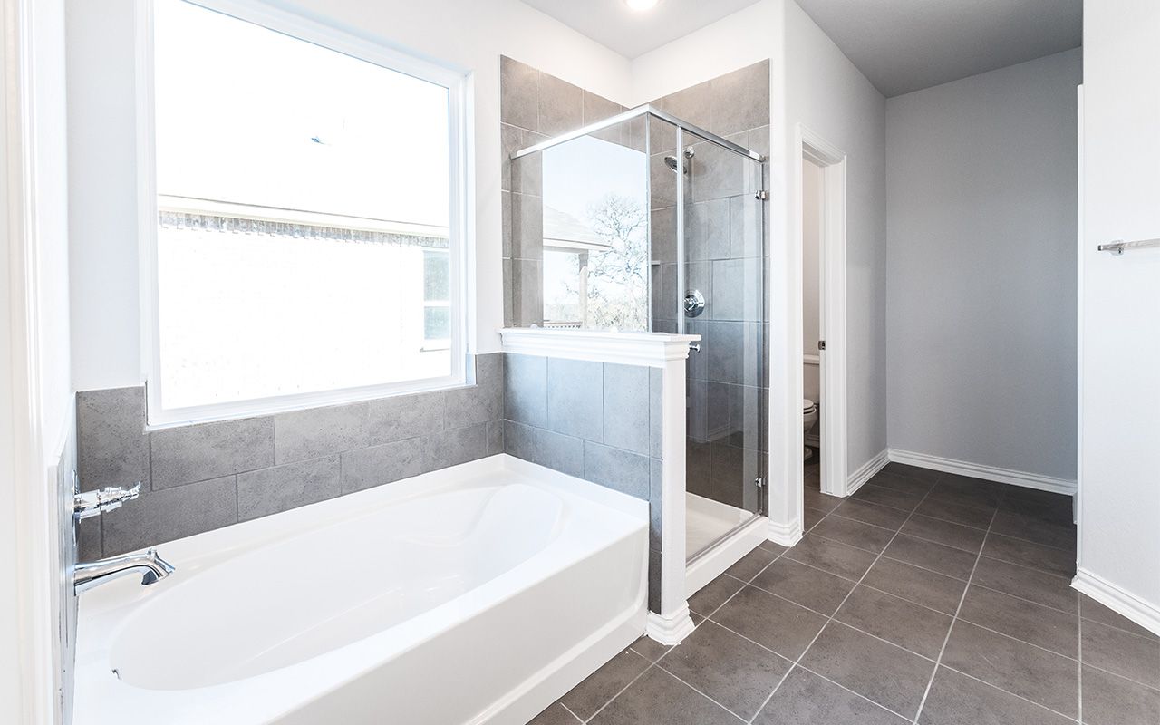 The uniquely-designed Emerson floor plan provides comfort and flexibility for the entire family. On the first floor, you are greeted by a large foyer that leads to your guest bedroom and third bathroom located just beside the bedroom. Down the hall, you are led to your welcoming formal dining room with the stairway to your second floor, a walk-in utility room, and the entry to your two-car garage just across the way. If you are needing more storage space to keep tools, supplies, holiday decorations or another car, opt to swap your two-car standard for a two-and a half or three-car garage. With the Emerson plan, you can opt to transform your dining room into a private study room if you need a home office or space for the kids to do their homework. Connected to your formal dining room is your spacious family room with the conveniently adjoined kitchen and breakfast area. Your kitchen contains several attractive features like granite countertops, birch cabinets, designer light fixtures, and industry-leading appliances. The spacious family room and formal dining room are ideal for entertaining guests. Add extra flair to your family room by choosing to put in a unique gas log fireplace. For those in your family who crave spending time outdoors, you have the option of a covered patio off the breakfast area. Finishing the first floor is your secluded master suite with three windows allowing for beautiful natural light to shine through. Your master bathroom features cultured marble countertops with dual vanities, a bathtub with a separate shower, and a sizable walk-in closet. You can even opt to upgrade to a super shower instead! Up the stairs, you are welcomed by a hallway leading to two additional bedrooms and the full secondary bathroom. Upstairs options include a game room or a media room at the top of the stairs! Either option is something your whole family can enjoy. With the Emerson plan, your family can sprawl out and live comfortably without sacrificing style.