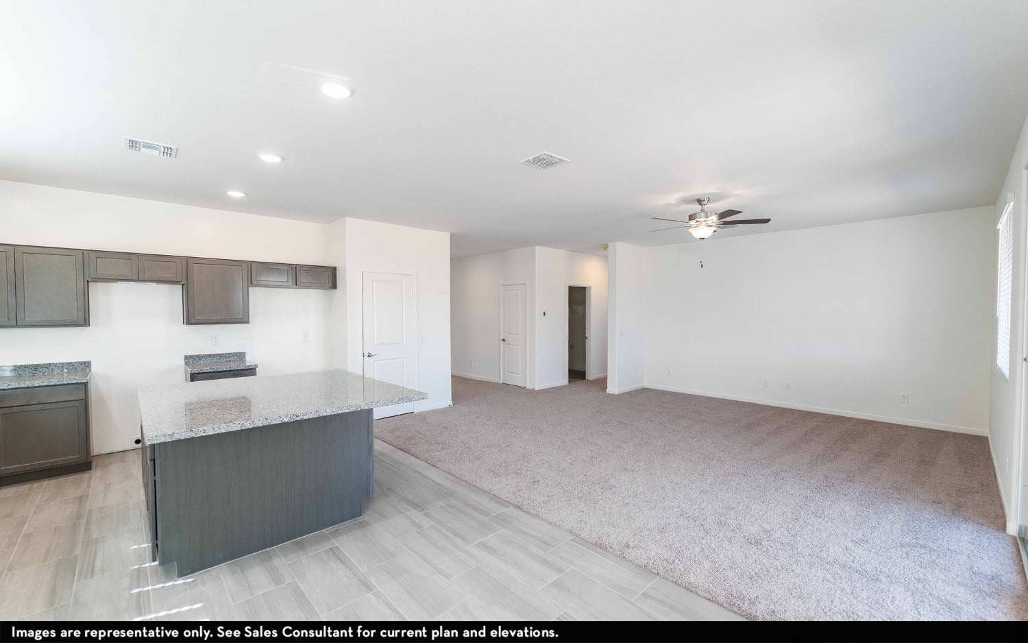 You'll love everything about the Mesa floor plan! Starting with the outside of the home, you're met with a long walkway stretching to your front porch, giving the home a secluded and private feel! Entering the Mesa plan, you're met with the foyer that holds a hall closet, ideal for storing away coats, cleaning supplies, or other items. Beside the foyer is a hallway leading you to two bedrooms and a full bath that allows the option to upgrade to a dual vanity. At the heart of the home is the family room, as well as the adjoining dining room and kitchen. The kitchen boasts amazing features like designer lighting, industry-leading appliances, as well as granite countertops, to name a few. The openness of these areas allows for seamless flexibility and conversations in the home no matter where you are at! Just outside your backyard is the convenient covered patio, perfect for sipping your morning coffee, or simply relaxing and taking in the scenery. Back inside, the master suite resides. The master bedroom is both spacious and filled with natural lighting. The master bath is equipped with upgrades that will make this living experience all the more magical! The closet of your dreams is connected to the master bath and has plenty of room for all shoes, clothes, and anything else that needs to be stored. The Mesa’s open floor plan allows for a comfortable atmosphere that anyone is sure to enjoy.