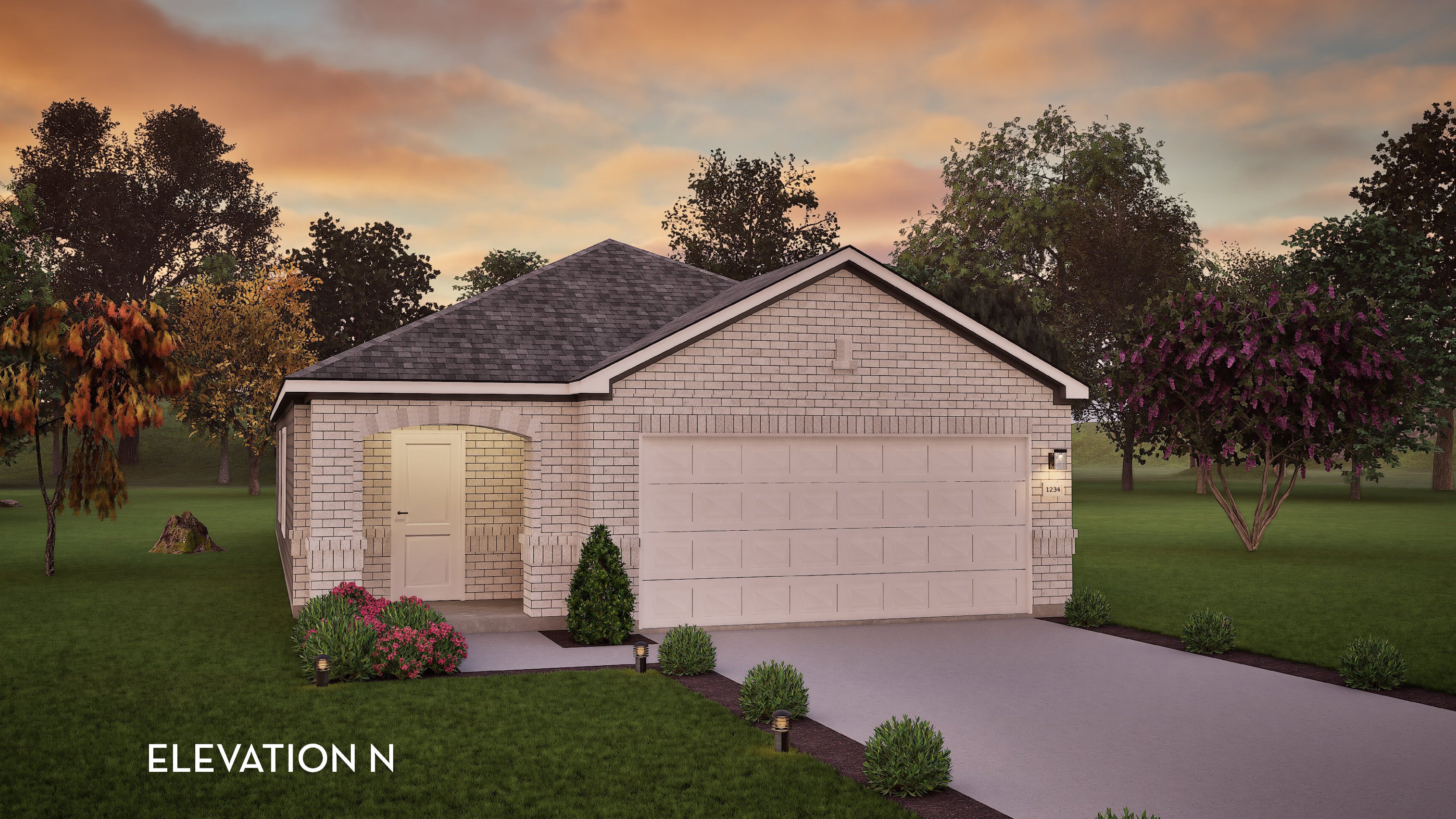 The Oak is a spectacular home boasting three bedrooms and two bathrooms, the perfect essential layout for most any lifestyle. Upon entering the stunning Oak plan, feast your eyes on the inviting formal dining room - perfect for hosting dinner parties or having your whole family come together for the holidays. Beside your formal dining room rests your convenient walk-in utility room with direct access to your spacious two-car garage. Toward the right wing of the home is your second and third bedrooms accompanied by the full secondary bathroom residing between the two bedrooms. Travel further throughout the home and you will find the flexible kitchen area that opens up to the family room, so you will never have to miss out on any moment with guests. Your kitchen comes equipped with sleek granite countertops paired with a ceramic tile backsplash, gorgeous flat-panel birch cabinets, industry-leading appliances, and stylish designer light fixtures. Conveniently attached to your family room is access to the backyard and the optional covered patio - perfect for relaxing outdoors and embracing the surrounding nature. Retreat to your private master suite, where you will discover cultured marble countertops, a super shower, and a walk-in closet. This well-designed plan is filled with energy-efficient features that keep you and your family's comfort at the forefront. Features like low E3 cube windows, third-party inspected insulation, and high-efficiency lighting all work together throughout your home to give you keep you and your family comfortable in your new home year-round. With the exclusive options and features that are available in the Oak plan, you will love experiencing life in this open-concept, essential floor plan. However you have always envisioned your dream home, guaranteed the Oak plan will give you everything you want and more while cherishing each and every moment inside of your new home for many years to come.