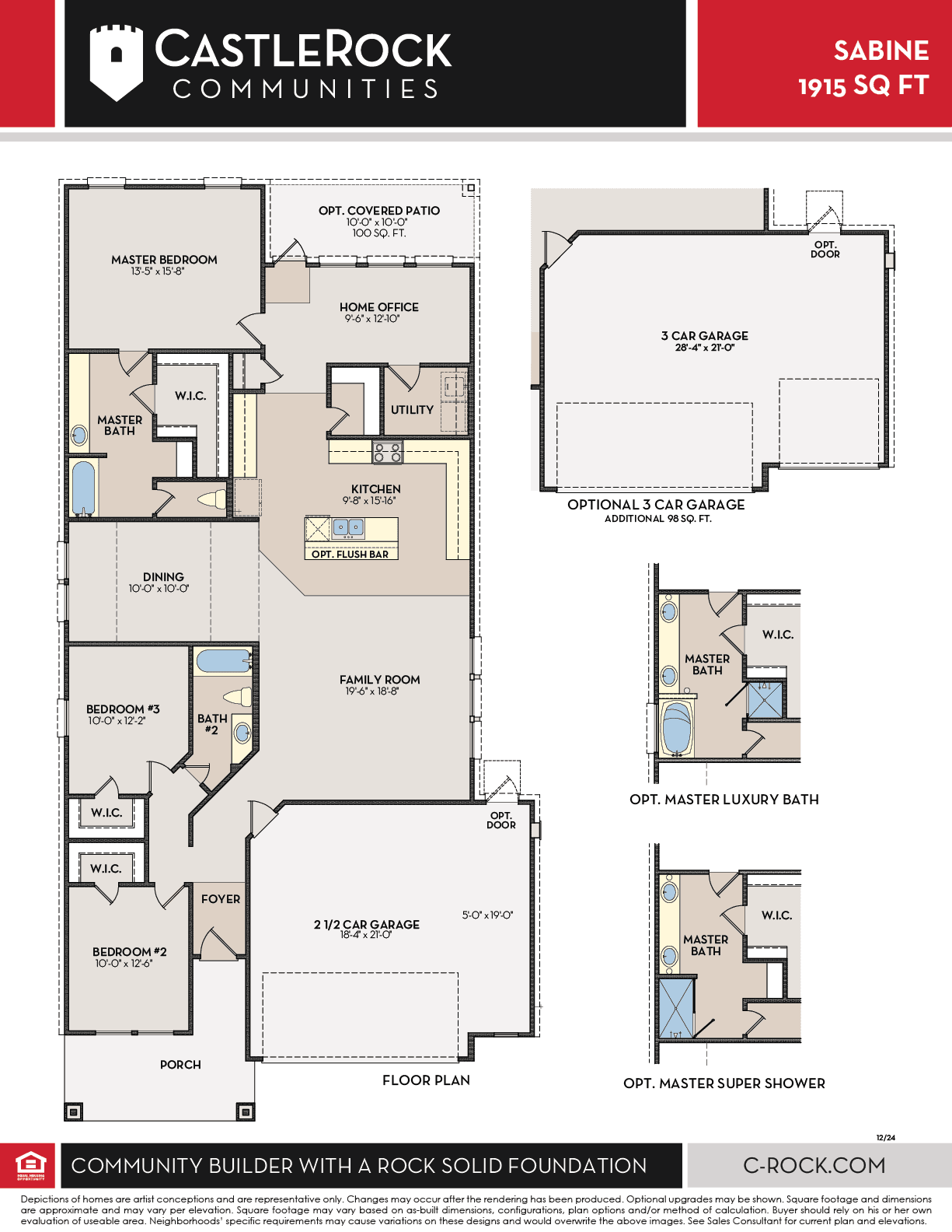 The gorgeous Sabine floor plan is a one-story home with an ideal layout that will suit most any lifestyle. Entering this lovely home, you are met with the second and third bedrooms, each boasting convenient walk-in closets, as well as entry to the full secondary bath residing right beside the third bedroom. Also at the front of the home is entrance to your two-car garage. If you are needing more space to store tools or holiday decorations, opt to include an extra five feet, making it a two-and-a half car garage. Down the hall lies the massive family room, formal dining room, and the huge kitchen - this entire living area is perfect for hosting dinner parties and family gatherings of any size! Your kitchen is equipped with ample counterspace featuring granite countertops, convenient kitchen island for more counterspace, industry-leading appliances, as well as an oversized pantry with your walk-in utility room just around the corner. Facing the utility room is your secluded home office - a private nook for the kids to finish their homework. If you love relaxing outdoors or grilling out for family and friends, you will love having an optional covered patio to experience those activities. Privacy is no worry when it comes to the master bedroom and bathroom at the back of the home. Your master bathroom includes cultured marble countertops with the option of dual vanities, a shower/bathtub enclosure, as well as a large walk-in closet! Elevate your master bathroom style and functionality by replacing the standard shower/bathtub enclosure with a luxury bath or super shower instead! The Sabine gives you plenty of unique opportunities to be able to personalize your home how you have always imagined. In the Sabine plan, you will appreciate the convenient, open-concept layout that gives you the perfect amount of space, no matter what stage of life you are going through. If you are looking for an accommodating, flexible floor plan for your family, then the Sabine is for you!